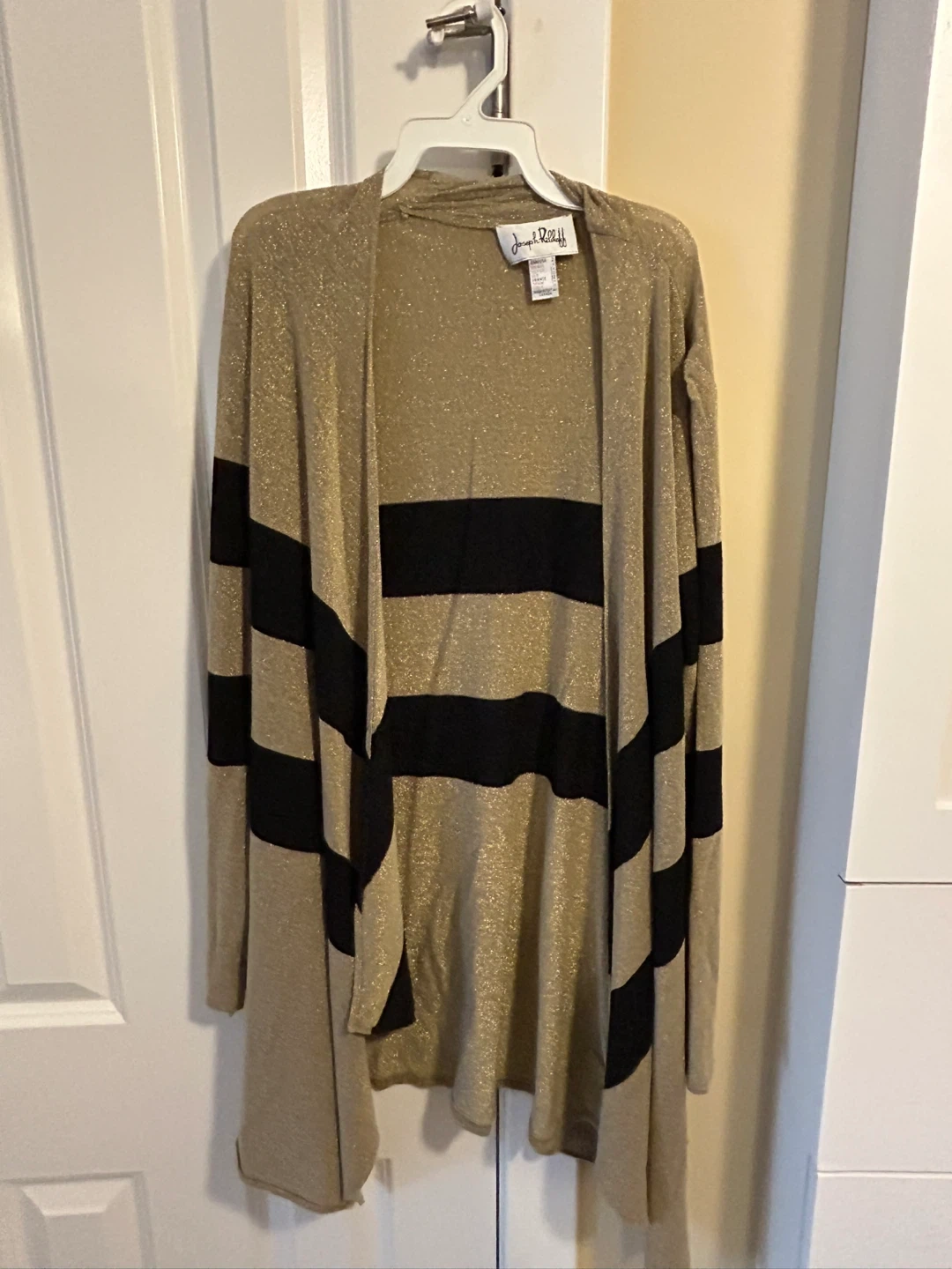 Joseph Ribkoff Gold Glitter Cardigan with Black Stripes Size 2