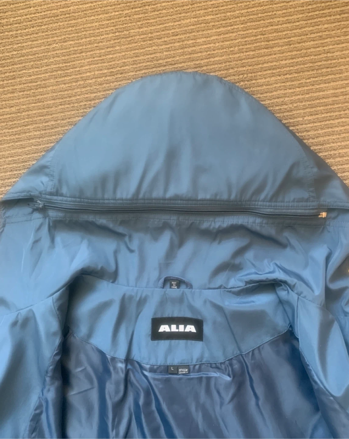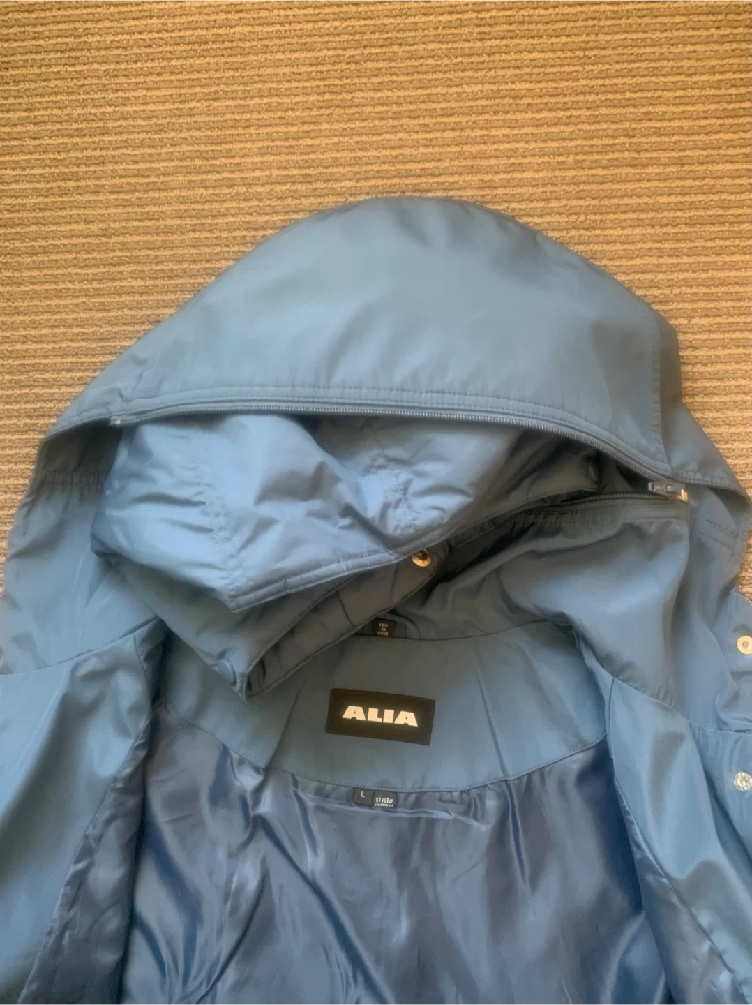 Selling a lovely blue ALIA spring/fall jacket in size L! The jacket features a hood and is made of 100% polyester shell and lining.