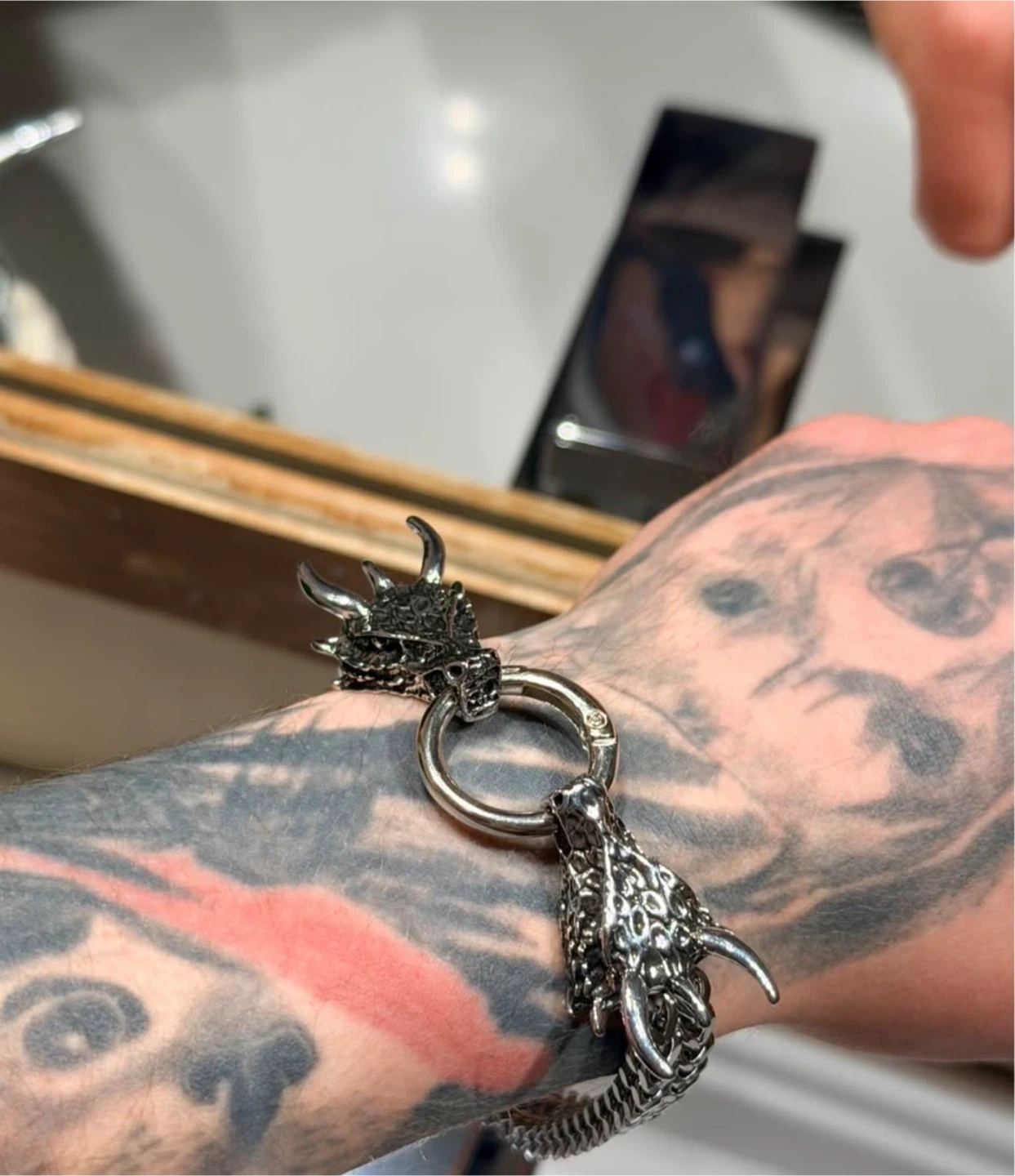 Men’s bracelet made from high-quality stainless steel. Durable, resistant to rust and tarnish, suitable for everyday wear. Features detailed dragon head design with secure clasp closure.