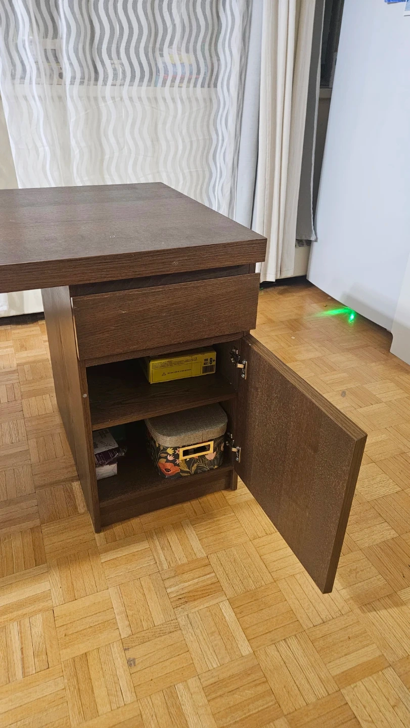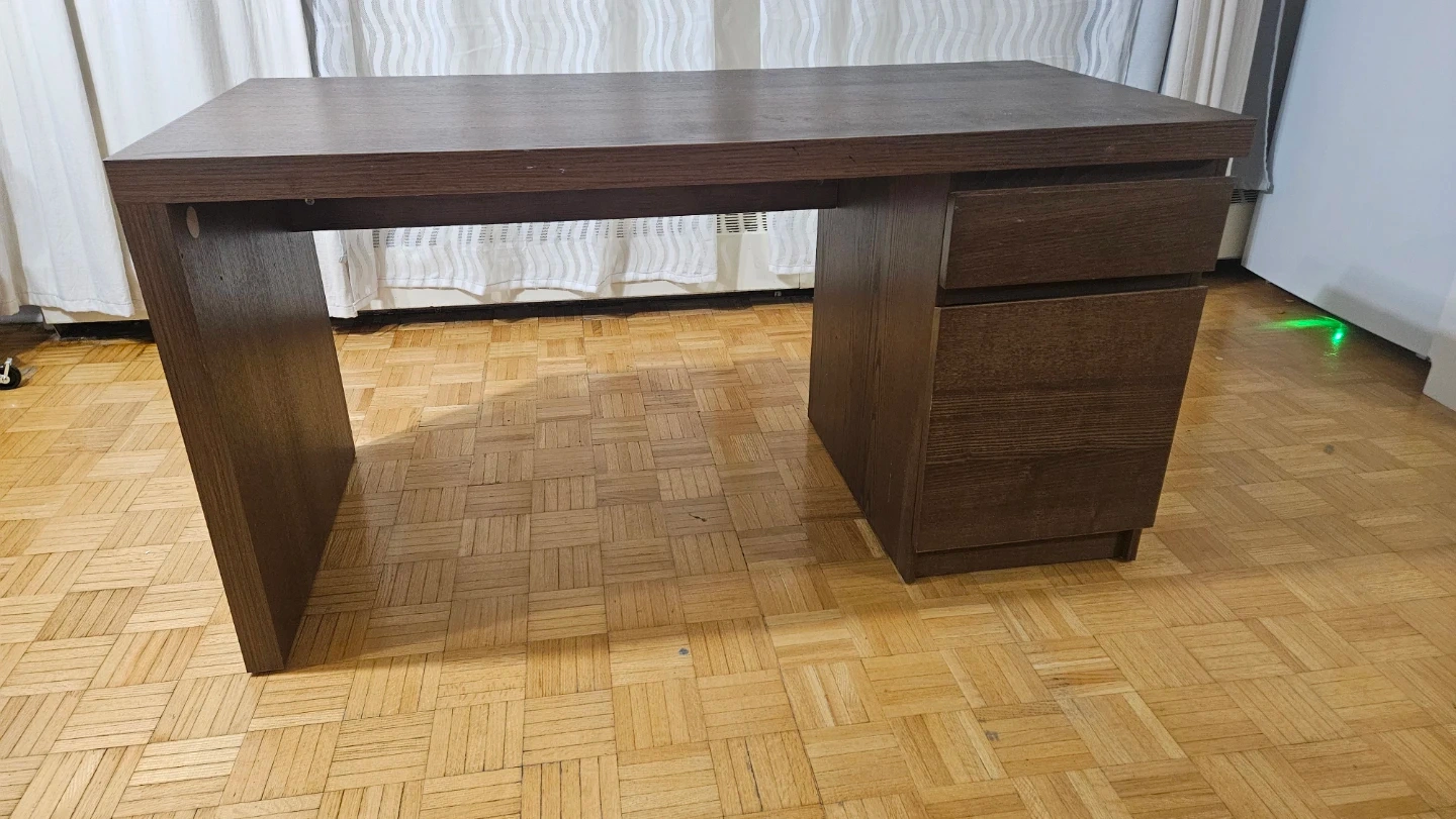 IKEA Malm Dark Wood Desk with Drawer and Cabinet