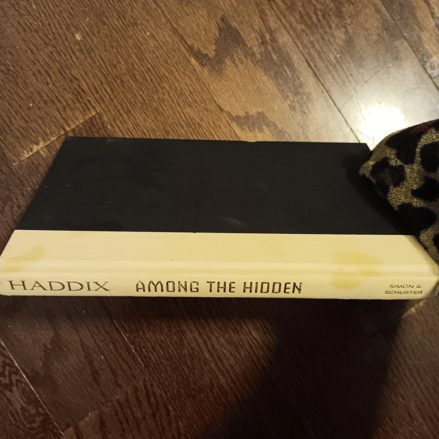 This is the book 'Among the Hidden' by Haddix. It's published by Simon & Schuster. This novel is part of a popular series for young readers. It's a great addition for anyone who enjoys adventure and mystery stories!