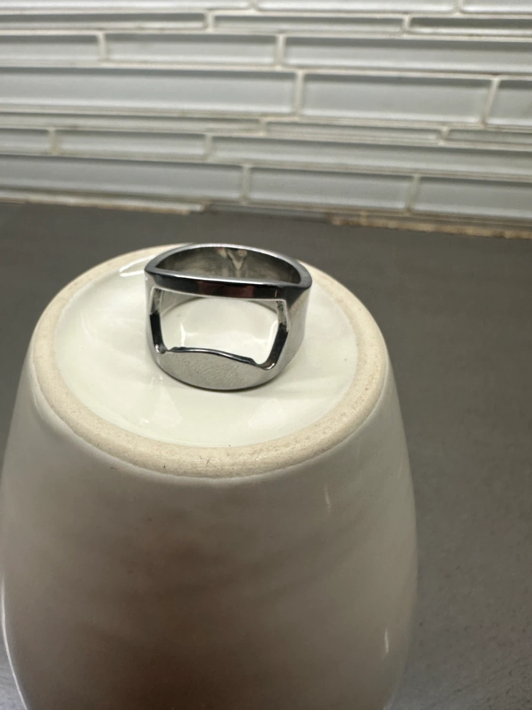 SS STEEL BEER BOTTLE CAP OPENER RING MEN SIZE 11 not silver