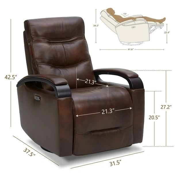 Brand New CHITA Genuine Leather Power Swivel Glider Recliner w/