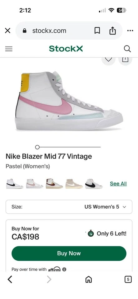 Buy & SellNike Blazer Mid 77 Vintage SneakersNike Blazer Mid 77 Vintage Sneakers$40Size 5 Nike sneakers. Worn about half a dozen times.WHERE TO MEETCheck LocationView MapSELLERFionaKingston Mills100 reviews0 chats·0 favorites·4 viewsSEND CHAT TO SELLERHi Fiona! I’m interested in your listing.Hi Fiona! I’m interested in your listing.Get the Karrot app to chatSign In to chat