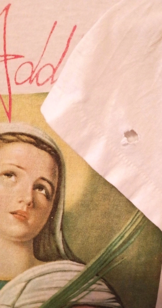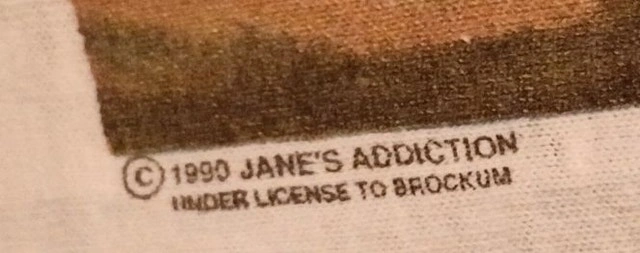 This vintage Jane's Addiction "Ritual De Lo Habitual" shirt featuring St. Lucy is authentic, not a modern re-print. I've owned it for over 20 years, and it was given to me by a friend who had it for years before that. The size is estimated at LG-XL (measurements shown in photo).The neck is stretched out and there are a few small holes, as shown in the photos. The tag is gone, but the Brockum copyright is still visible on the front. No shipping. Lowballers and re-sellers please note that I'm not going to be haggling on this one. No shipping. Available for a safe, public meet-up in downtown Kitchener.