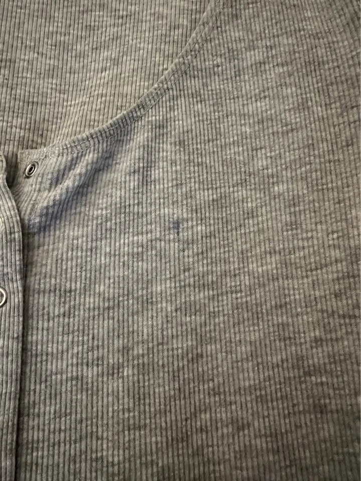 Very loved piece and has a small paint stain shown in the second picture. It’s not super cropped but isn’t full length either. Size xs but can fit small