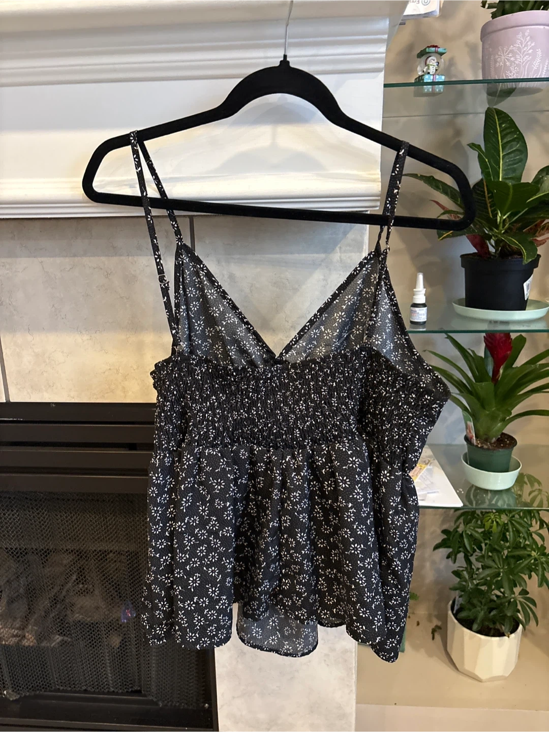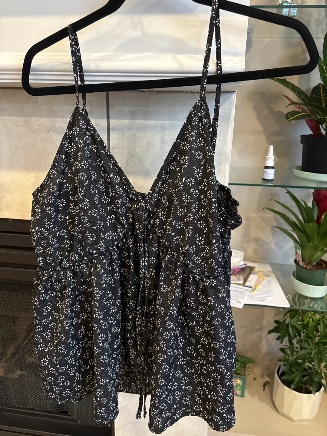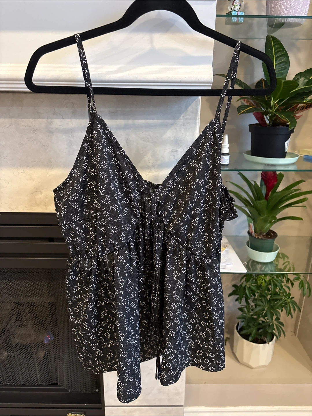 Black floral cami tank top