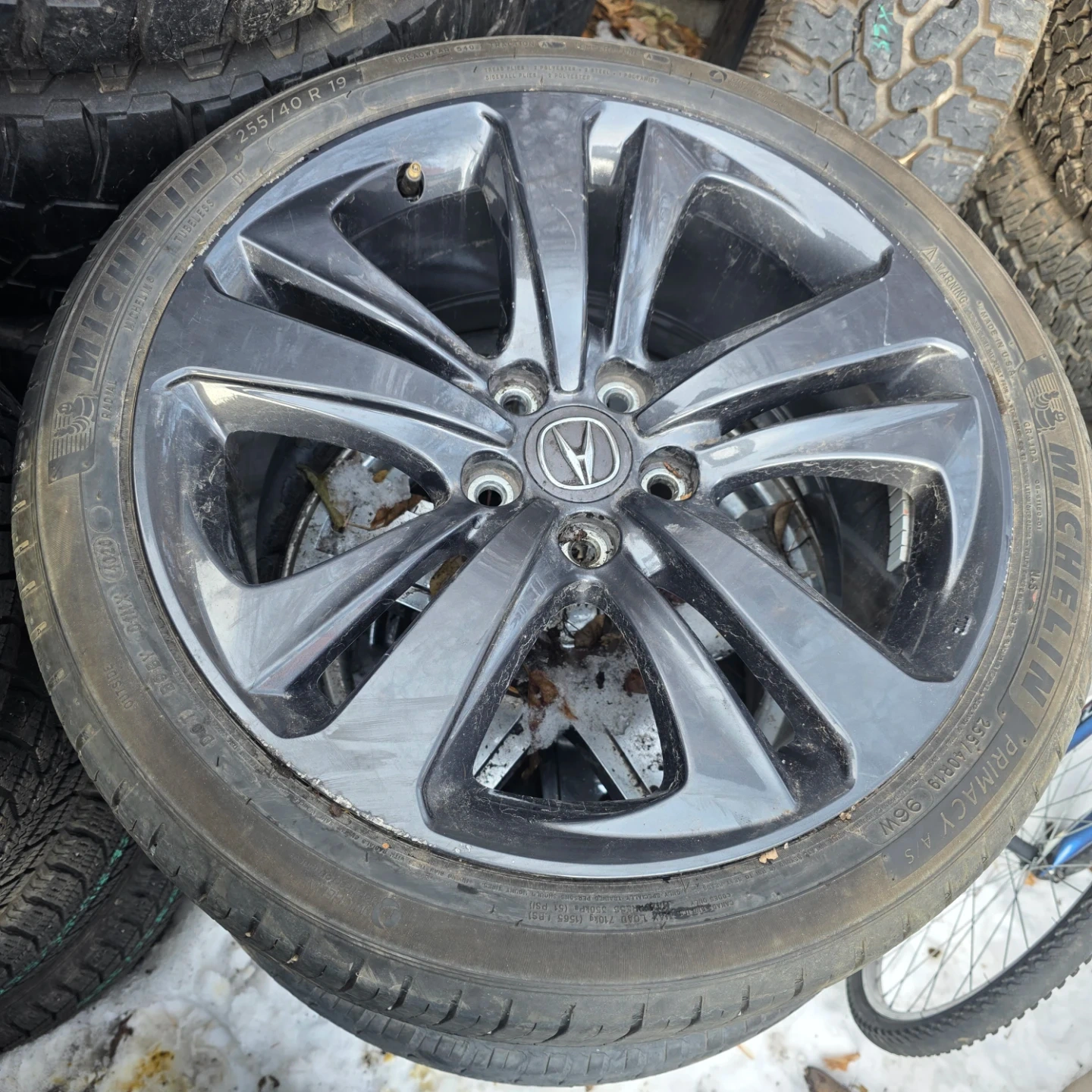 Selling an Acura rim with a Michelin Primacy tire. The tire size is 255/40R19. Allseason. Only 1tire on rim available asking $80obo