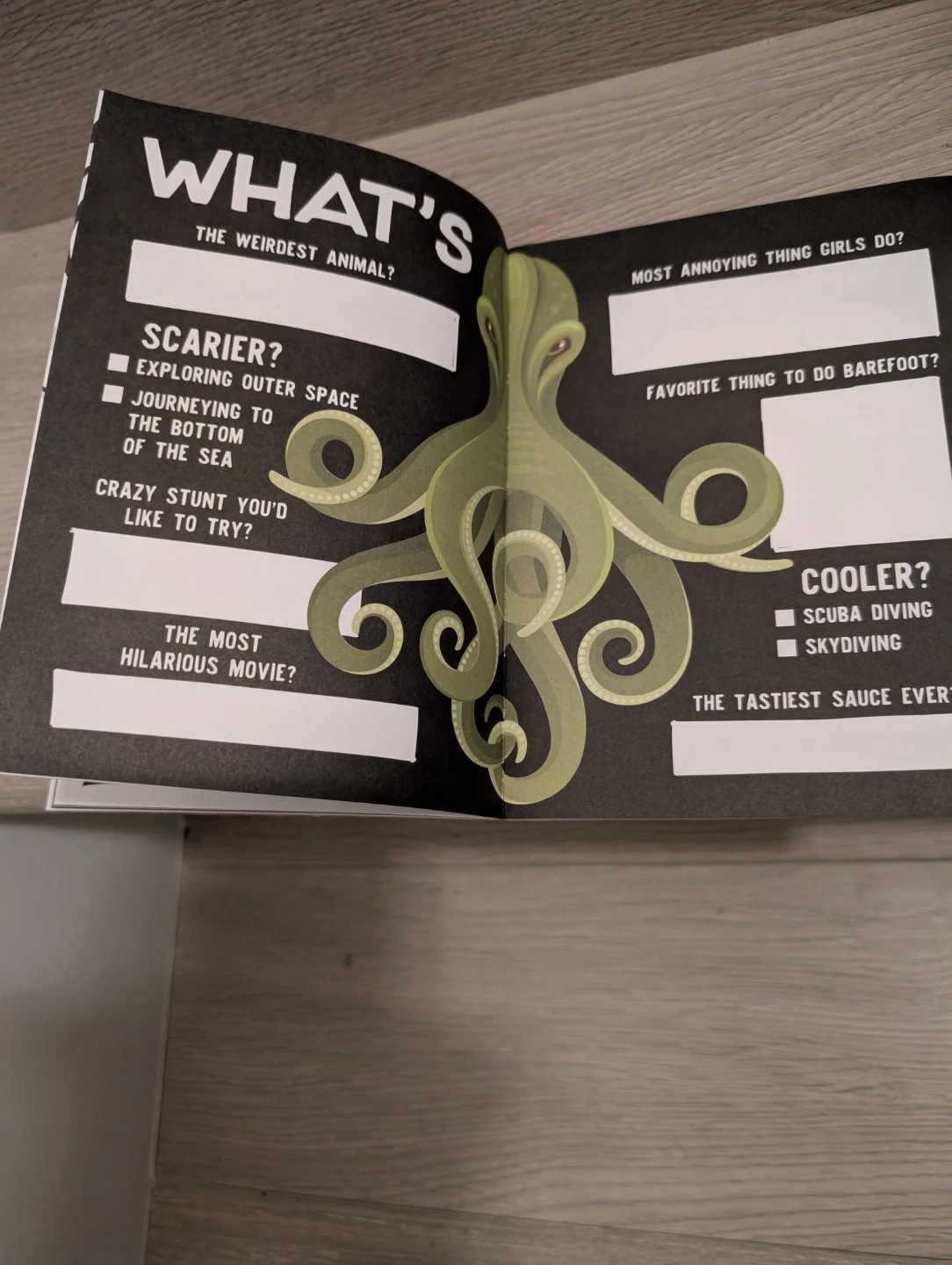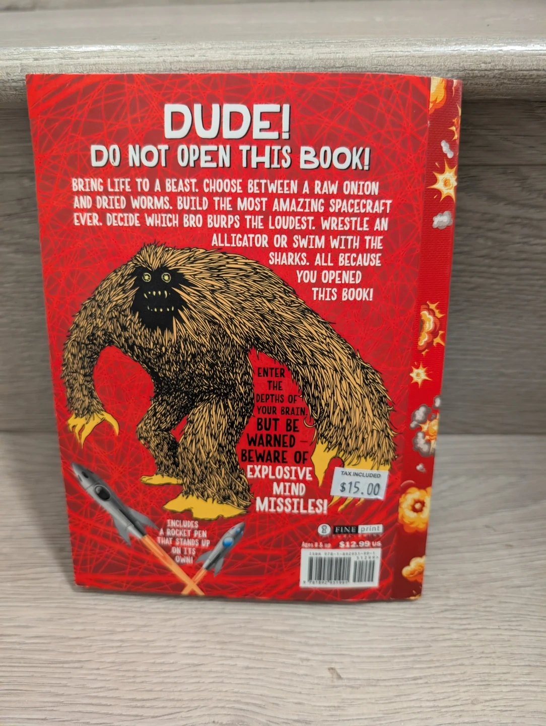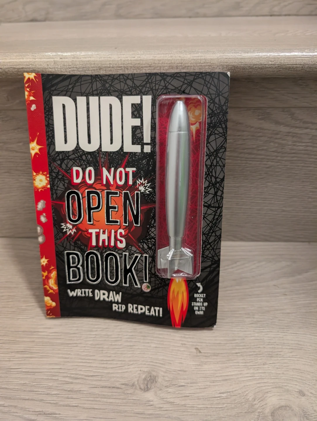This interactive book comes with a rocket pen that stands up on its own. It's filled with prompts to write, draw, and rip. Perfect for creative kids who love silly challenges! New $5