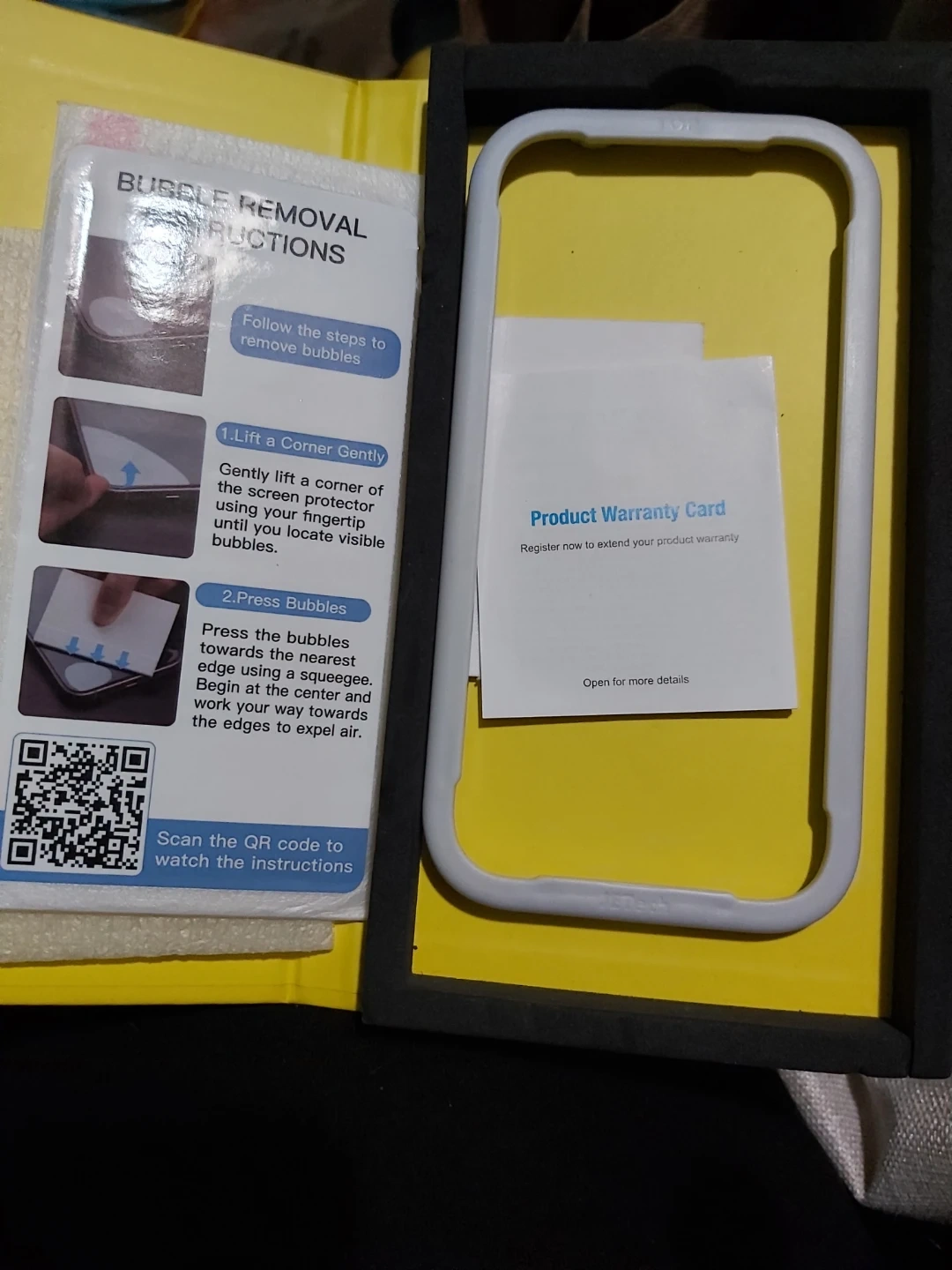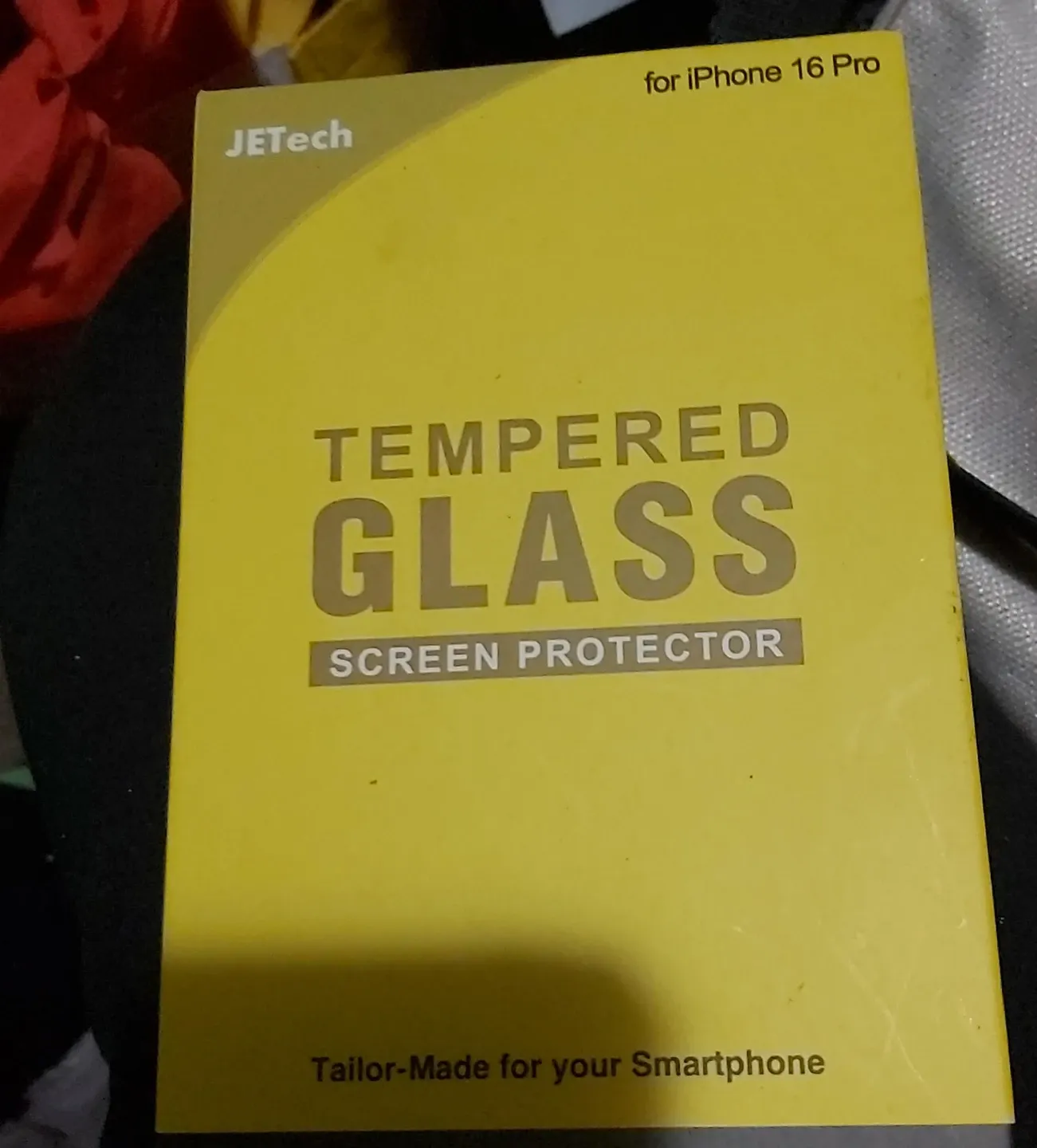 This is a JEtech tempered glass screen protector, tailor-made for your smartphone. It includes a bubble removal guide and a product warranty card. Installation is straightforward!