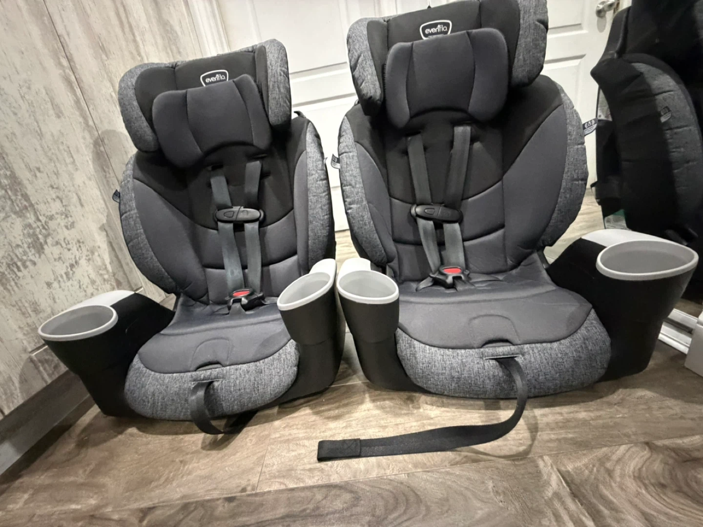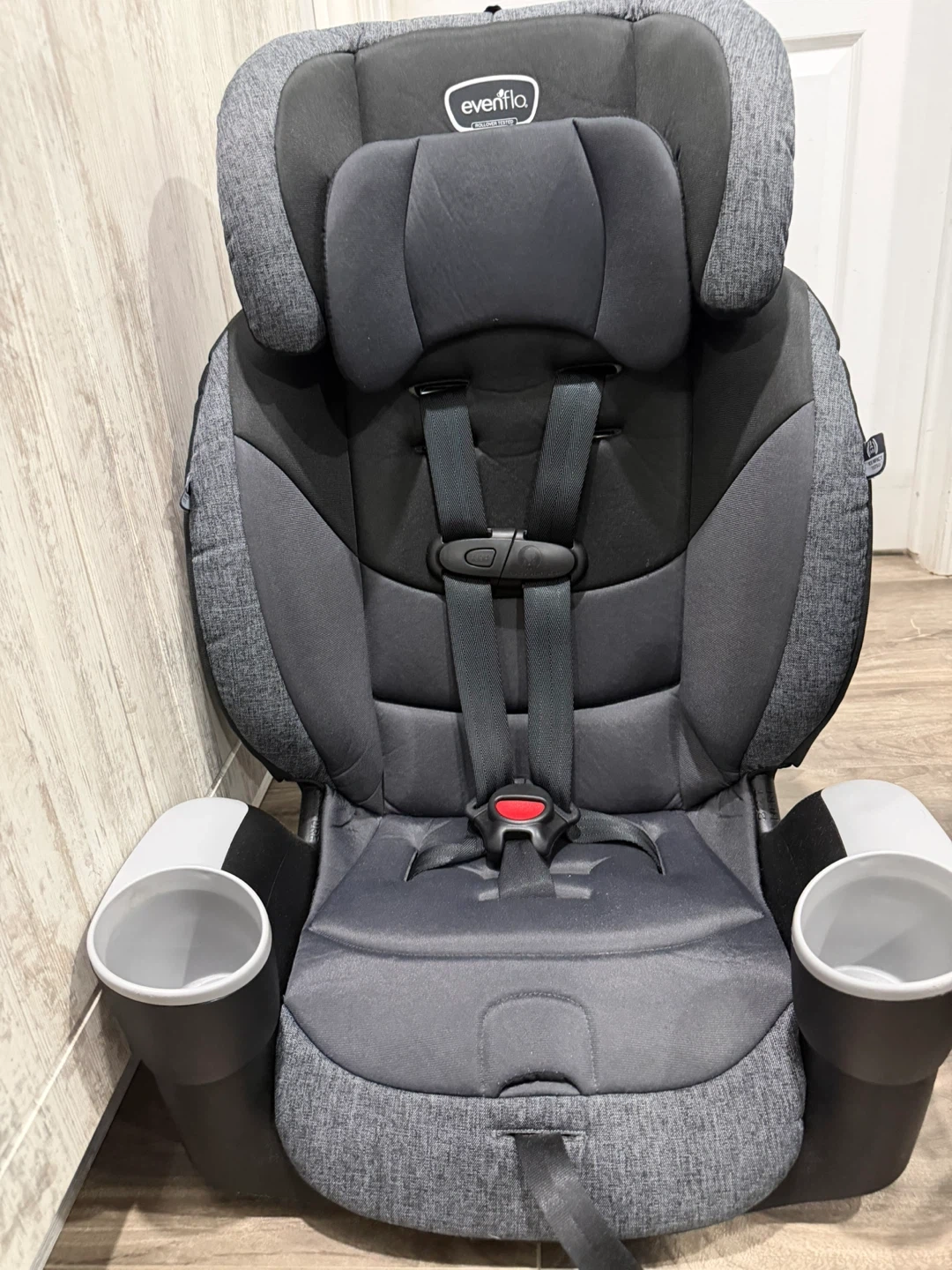 This Evenflo Maestro Sport is a harness booster car seat. It's designed for kids aged 2-10 years, weighing 22-110 lbs. It comes with two cup holders. $200 if they buy them together and $120 separately ☺️