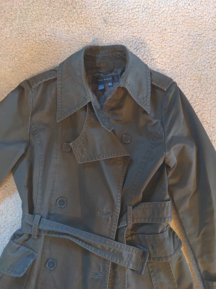 Zara Olive Green Trench Coat Size M