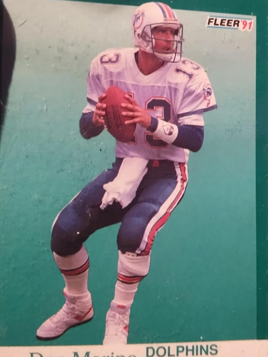 This is a 1991 Fleer football trading card featuring Dan Marino. It's a classic collectible for any Dolphins fan. The card is in good condition.