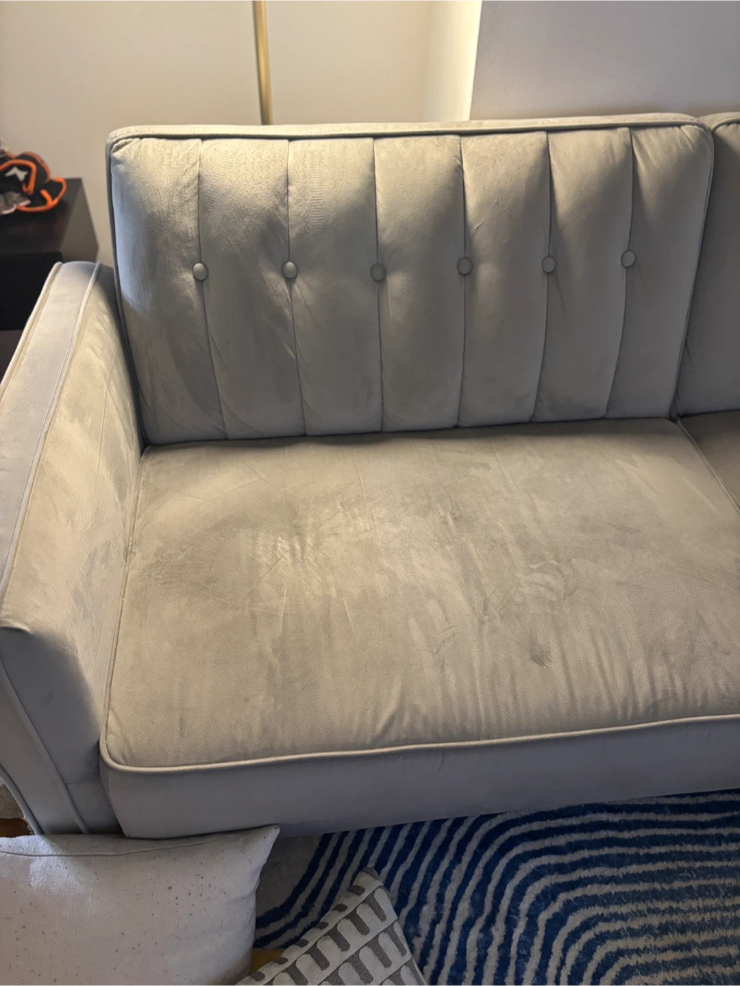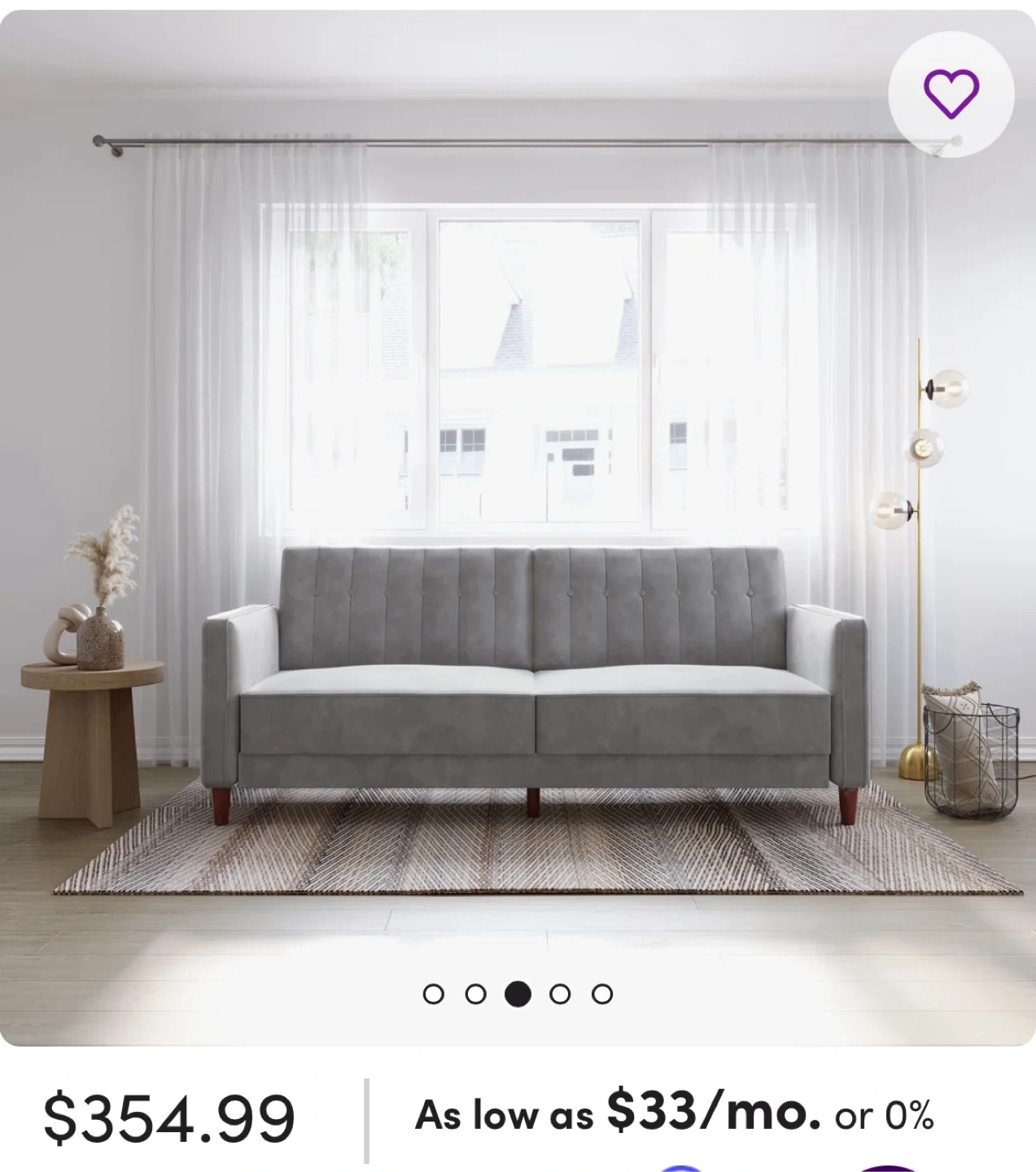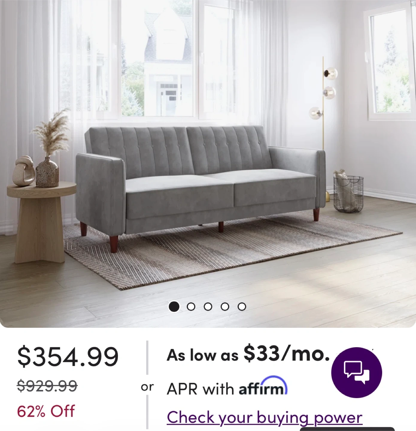 This is a gray velvet tufted sofa. This convertible sofa effortlessly transitions from a stylish seating area to a twin-size bed, making it a versatile addition to your living space. Built with an engineered wood frame and resting on brown-toned tapered legs, it exudes a vintage-inspired charm that complements various decor styles. Upholstered in plush velvet, it offers a rich solid hue that adds a touch of elegance to your room. Foam-filled cushions provide firm support, while vertical channel tufting and square arms enhance its mid-century modern appeal. Perfect for accommodating overnight guests, this sofa is a practical choice for compact spaces.