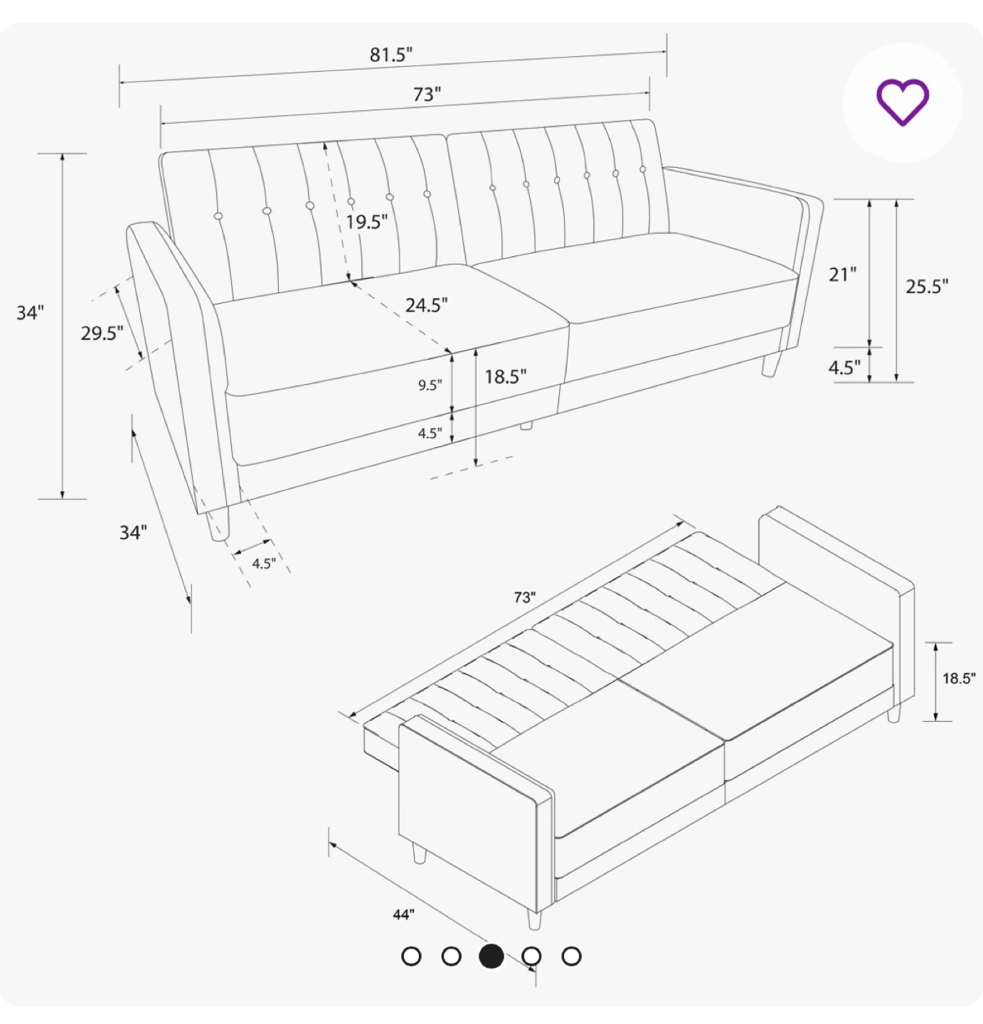 - Dimensions34'' H X 81.5'' W X 34'' D