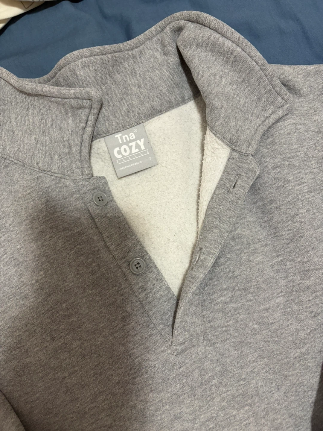 Selling a Tna COZY fleece pullover in a lovely grey colour! It's super comfortable and perfect for lounging around or layering up on chilly days. The material is soft and cozy, making it a great addition to your wardrobe