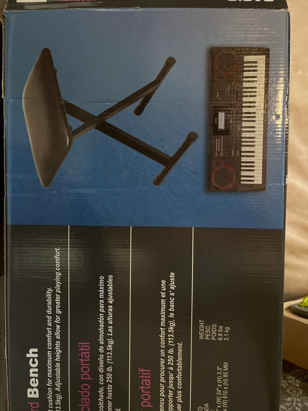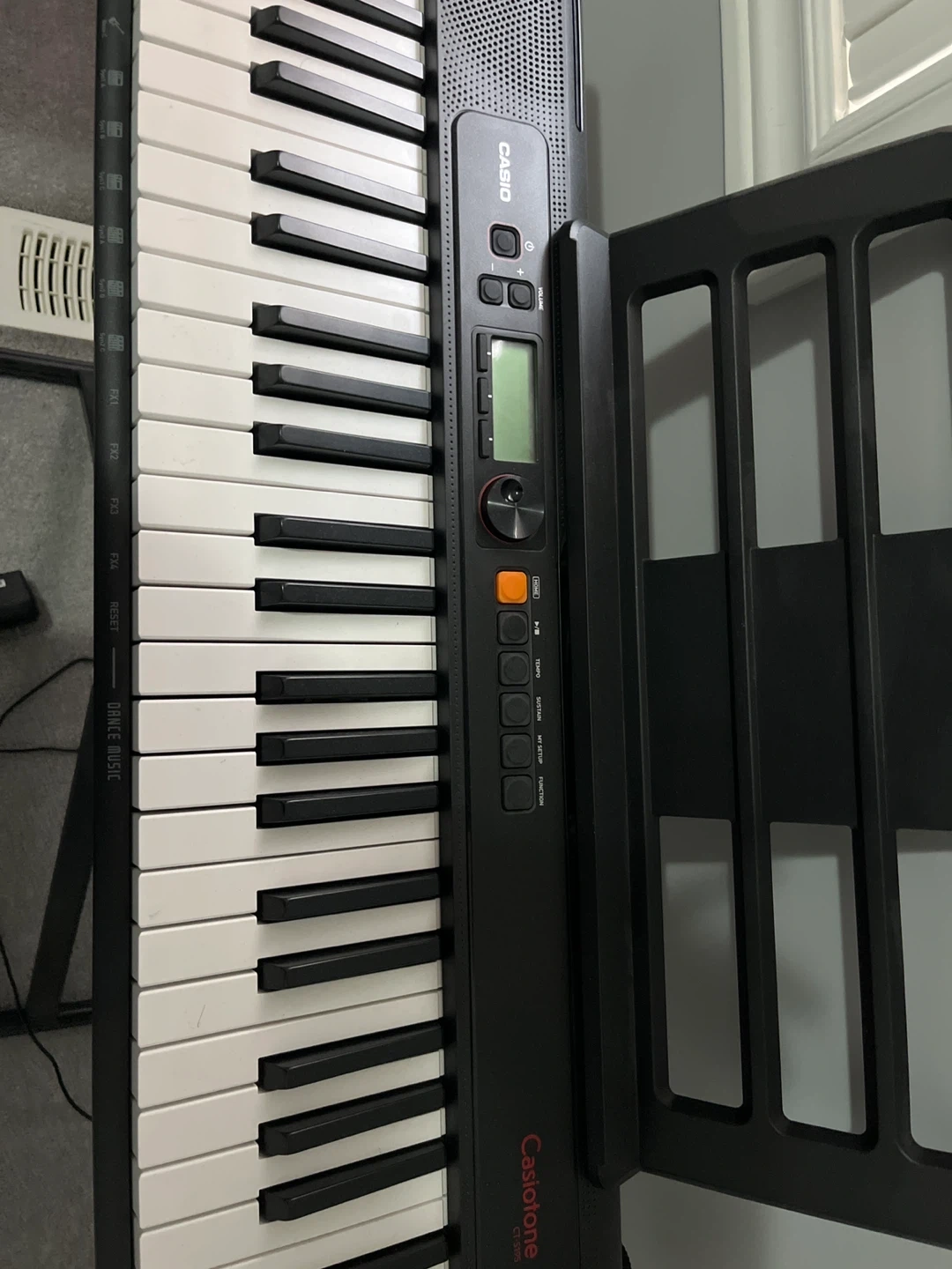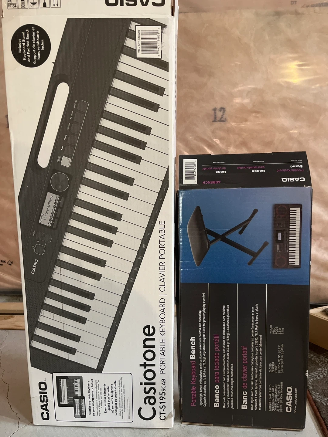 This Casio Casiotone CT-S195 portable keyboard comes with a music stand and a padded bench. It's a great starter keyboard for aspiring musicians. The keyboard features 61 keys and various tones and rhythms.