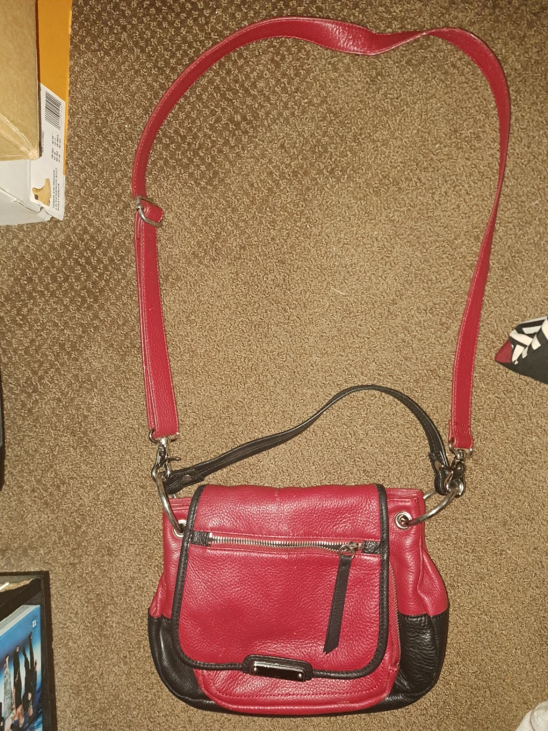 Red and Black Leather Crossbody Bag