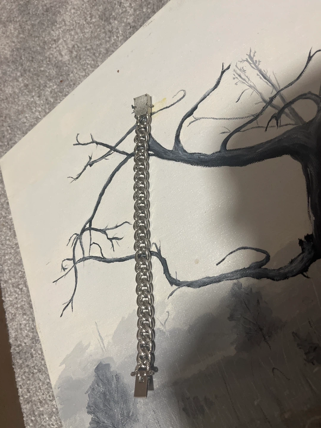 This flashy Cuban link bracelet features a double row of sparkling rhinestones. It has a secure clasp closure for easy wear. It's a statement piece that'll add some serious bling to your look!