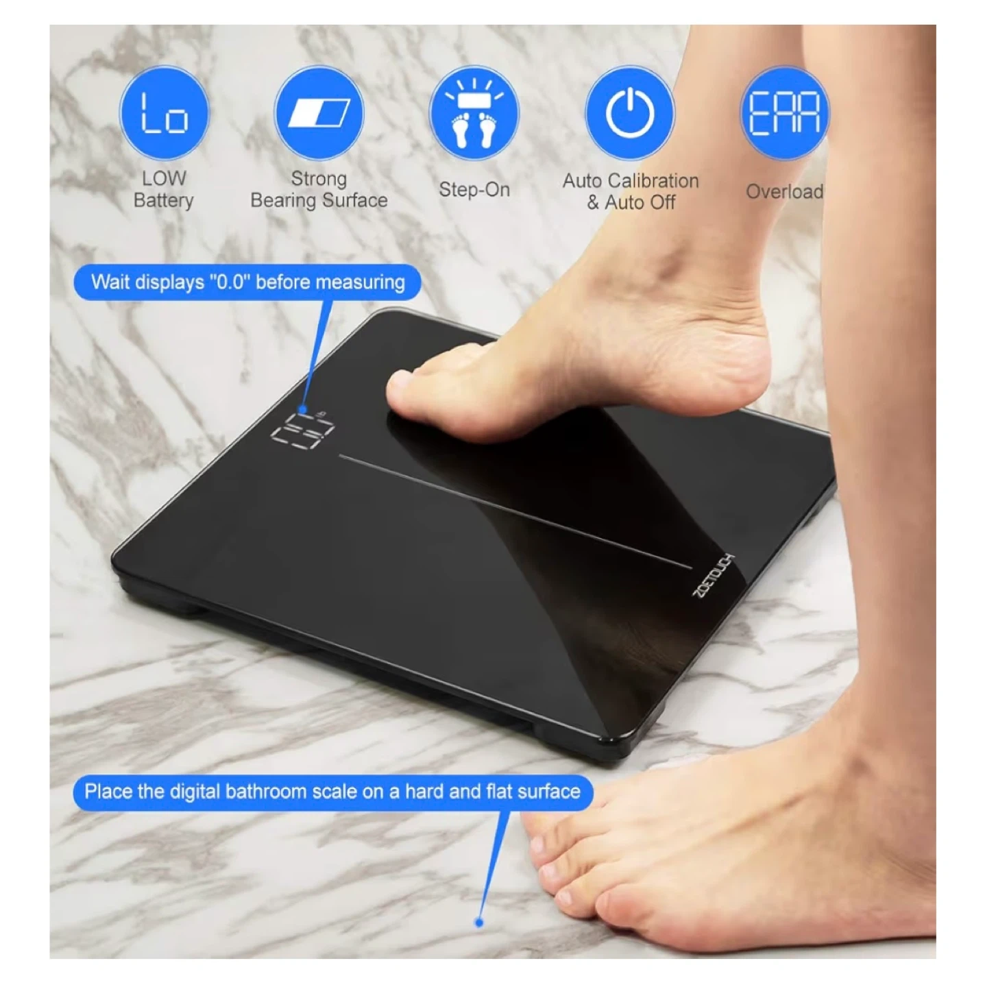 Get accurate weight readings with this ZOETOUCH digital bathroom scale! It features: