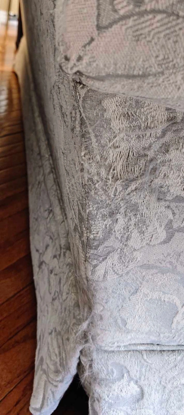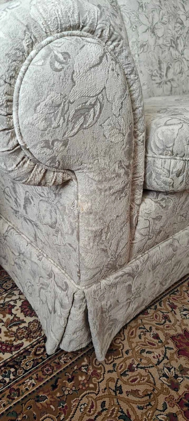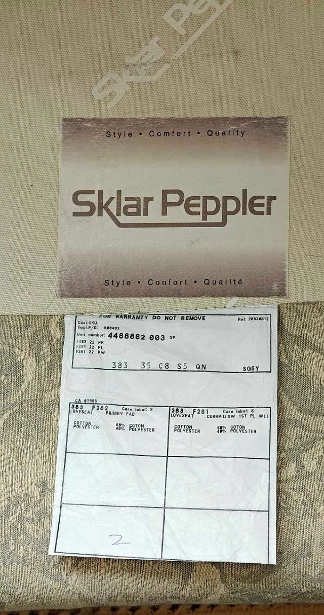 This gently used, high-end Sklar Peppler sofa and loveseat set is in good condition. It was rarely used as it was kept in a living room, so the foam is still firm and the material is in great shape.