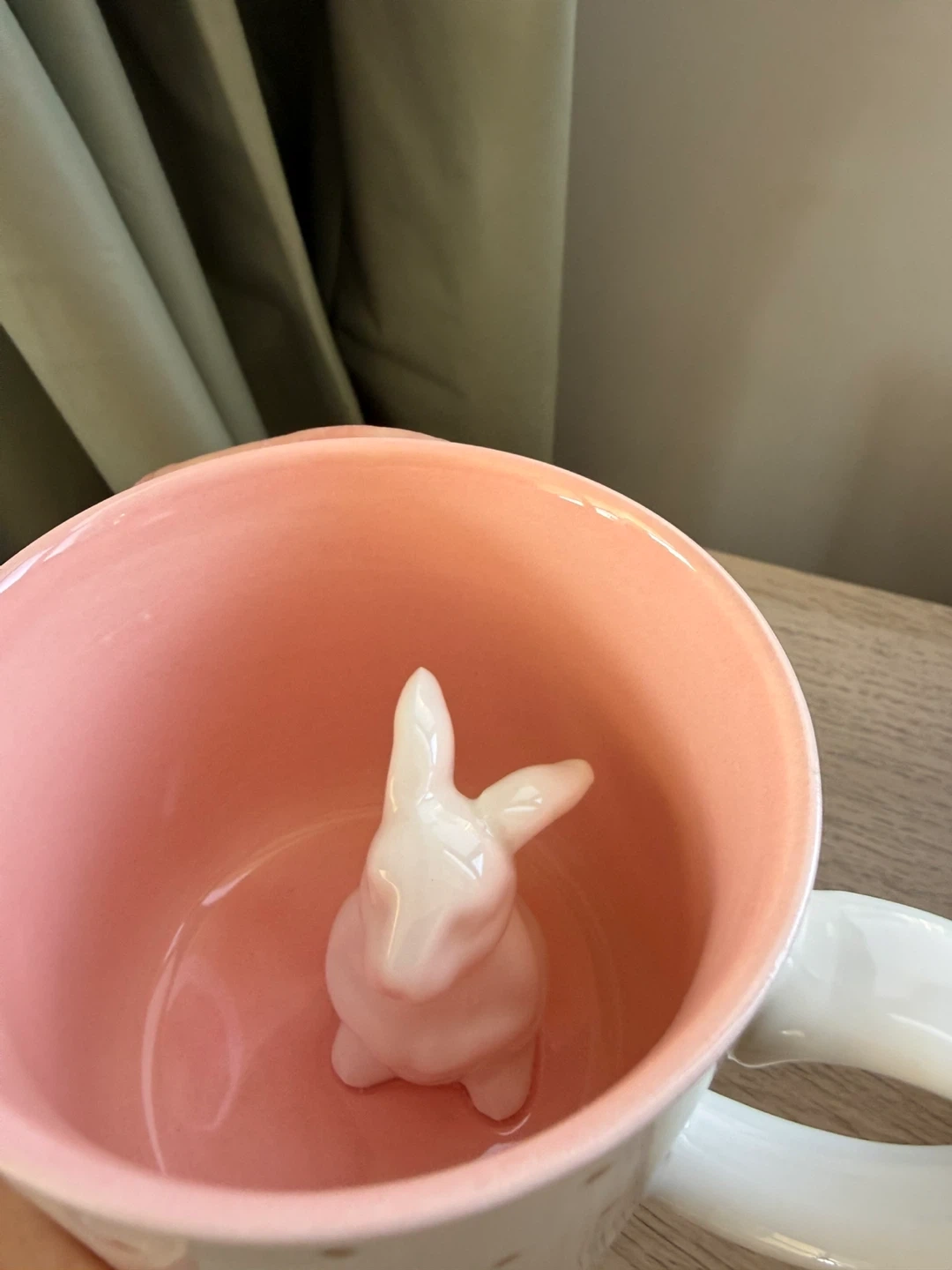 Very sweet little bunny mug! Features a cute white ceramic bunny inside the mug, and has gold
