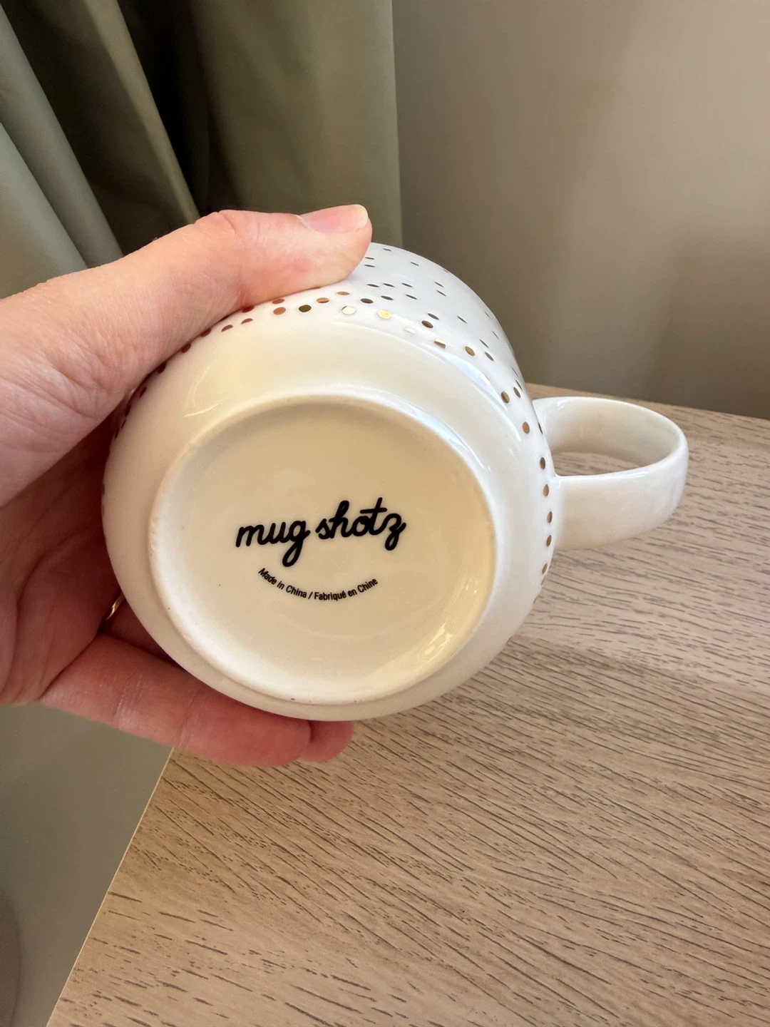 Metallic dots on outside of mug. (Do NOT microwave this mug because of the gold)