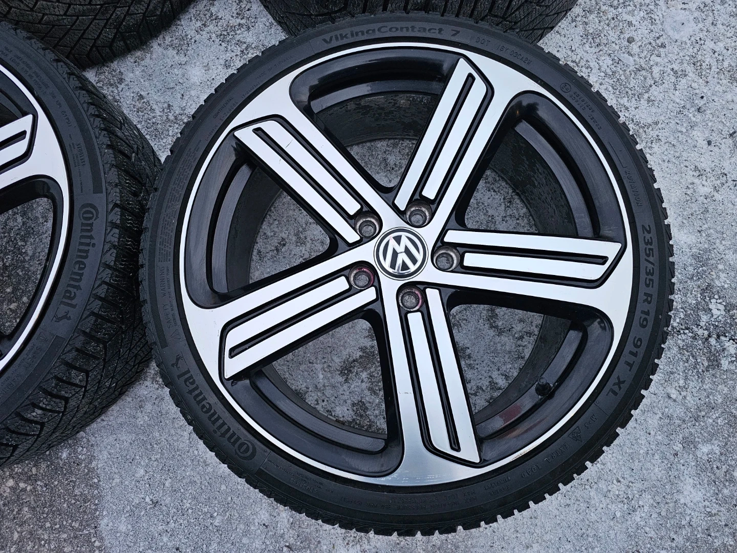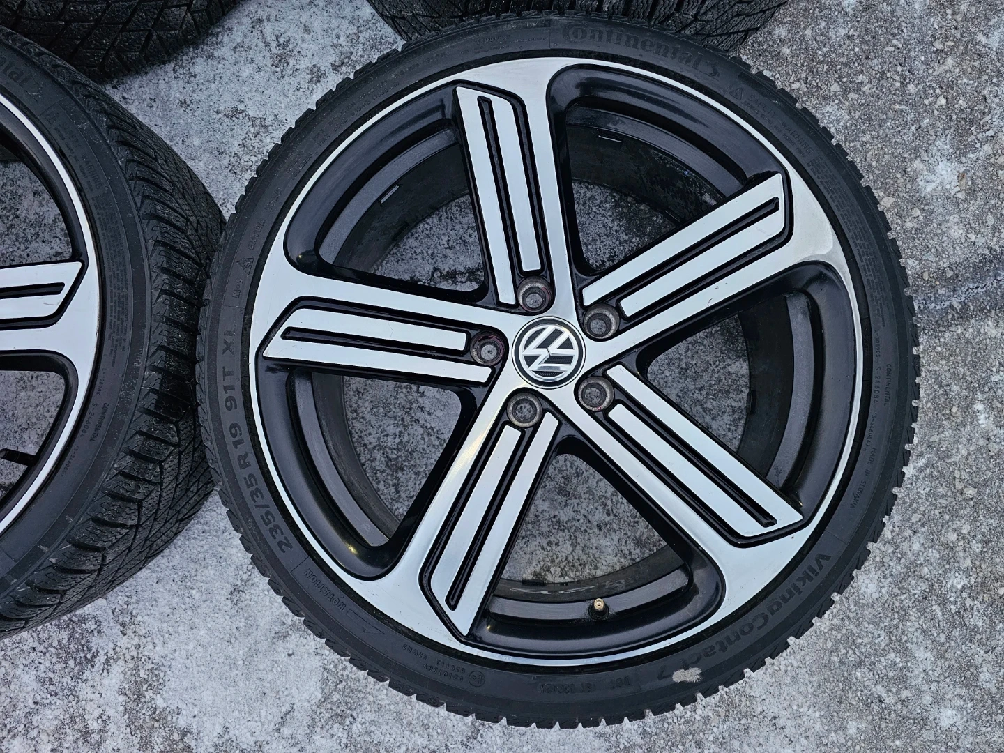 Set of 4 original 19" volkswagen golf R (mk7) rims with continental winter tires on them 235/35 R19. Rims and tires are in good shape, no issues. Lots of thread left on tires