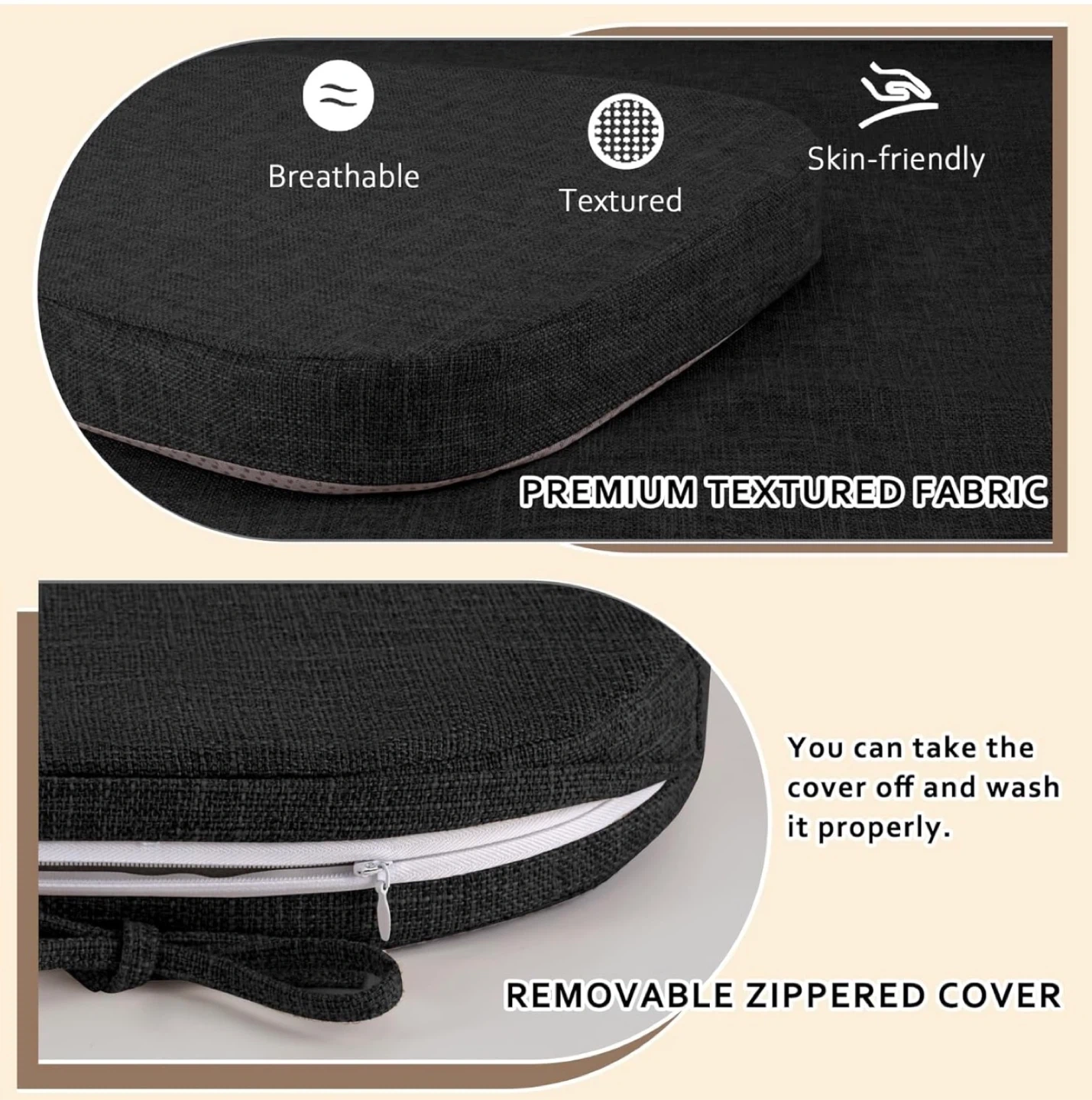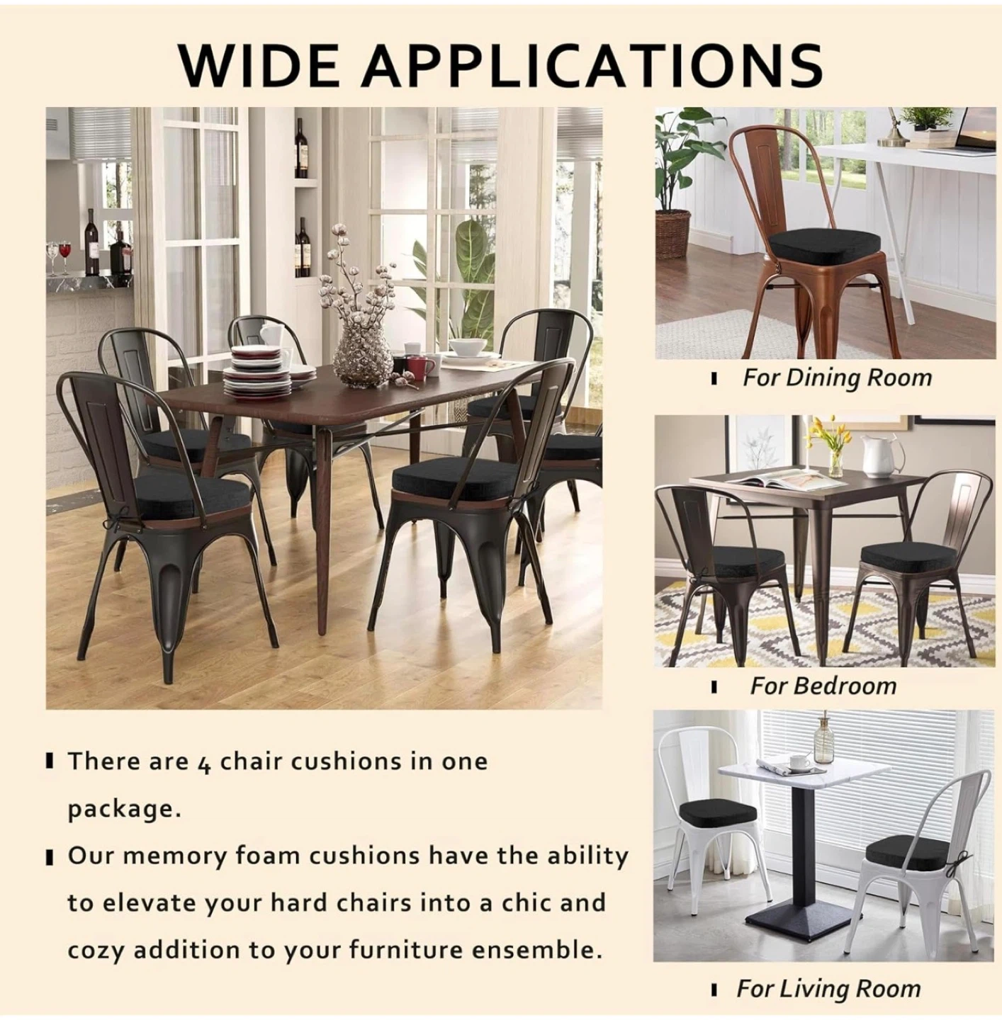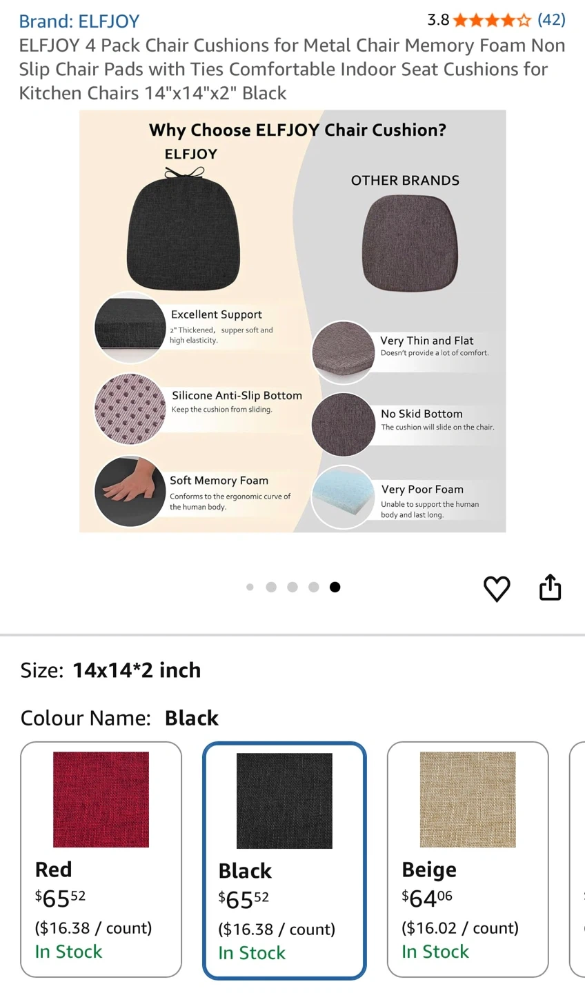 These chair cushions are made with a durable, textured fabric and 2" memory foam for comfort. They feature a non-slip bottom and long ties to keep them in place. The covers are removable and washable.