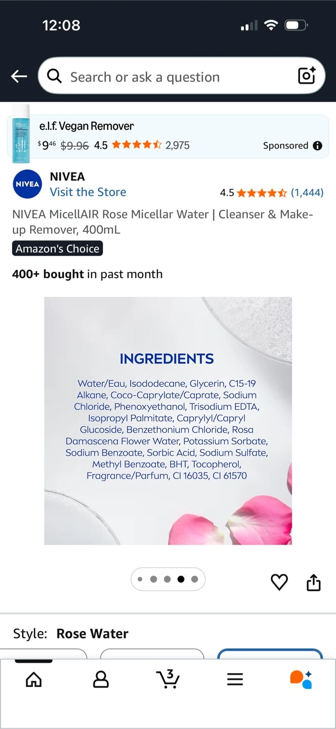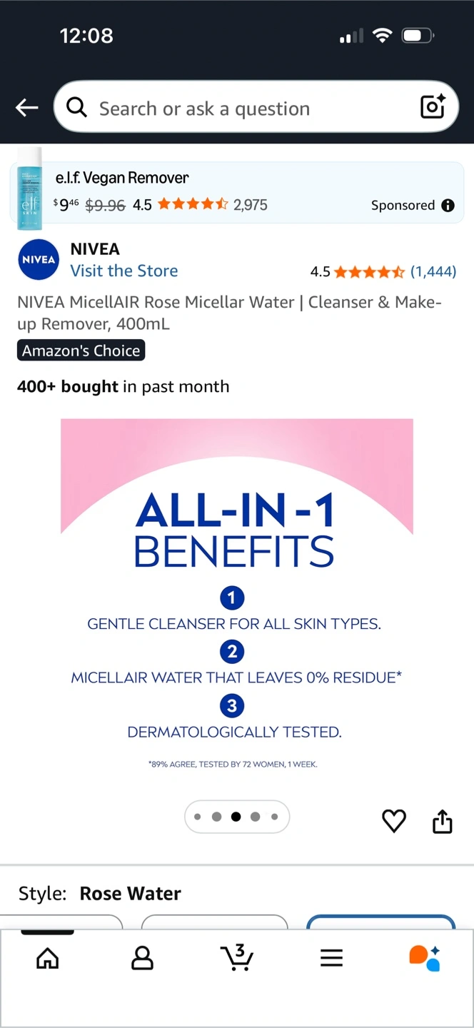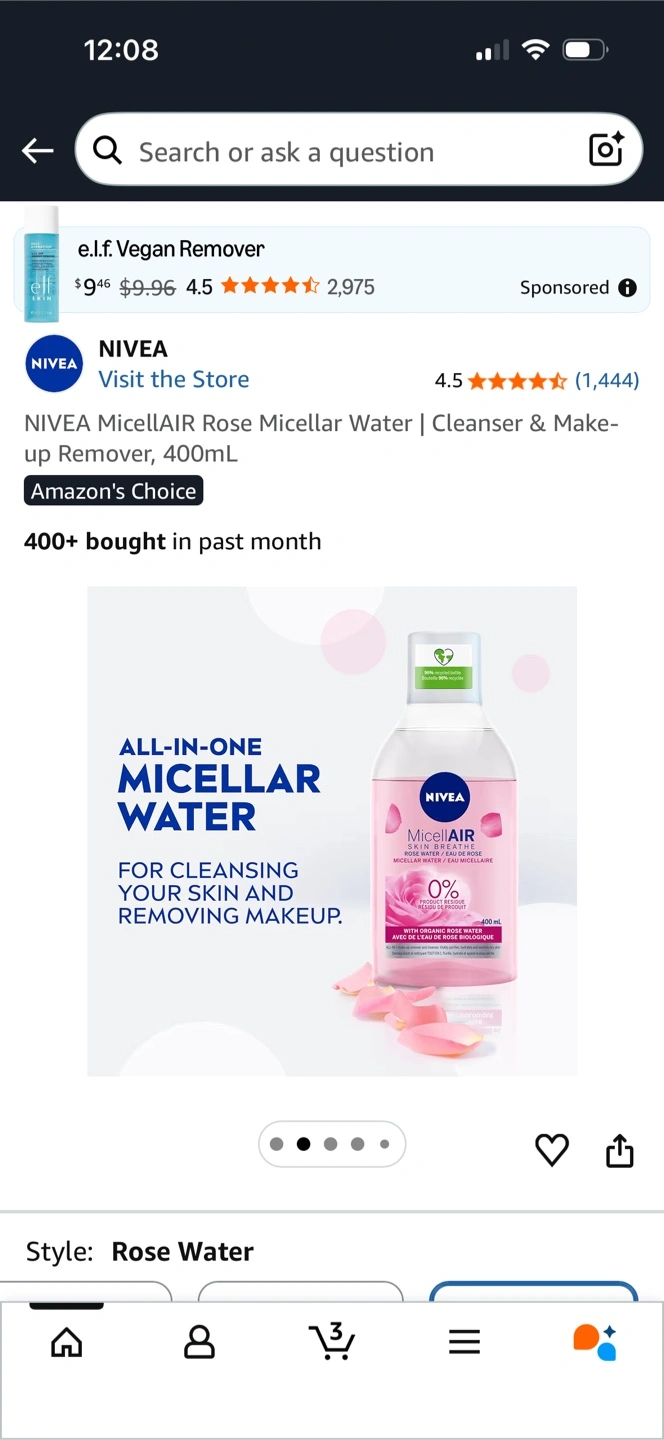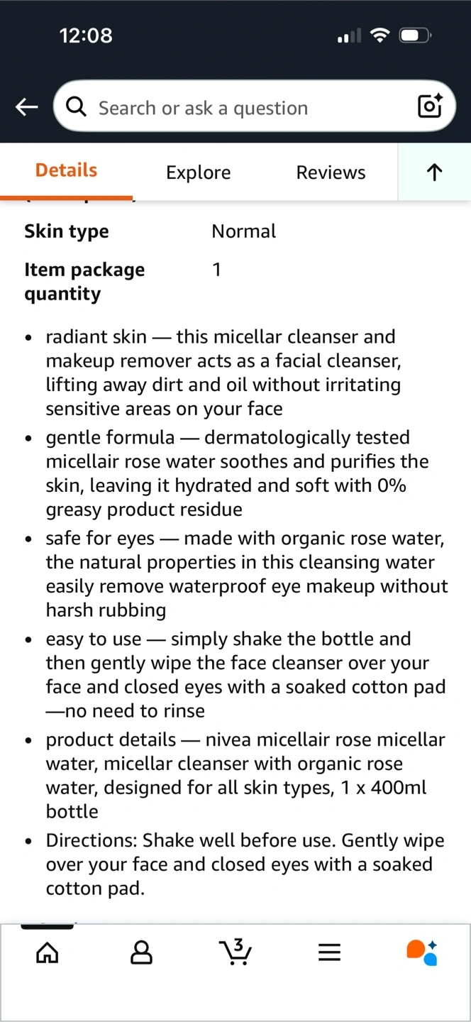 NIVEA Micellar Water for Dry & Sensitive Skin. It's an all-in-one daily cleanser and makeup remover. It's made with 97% naturally derived ingredients and 95% recycled material. Suitable for face, eyes, and lips.
