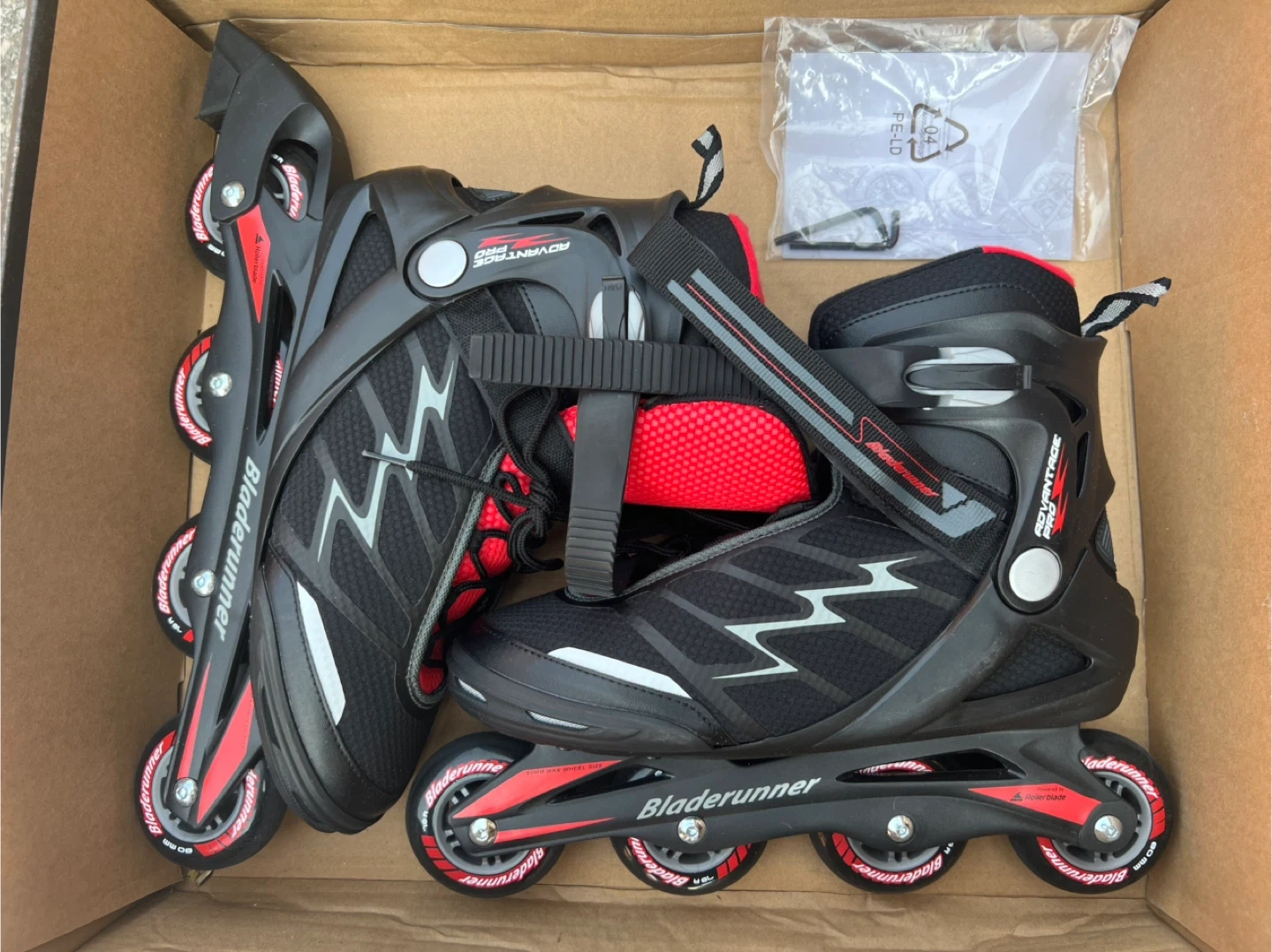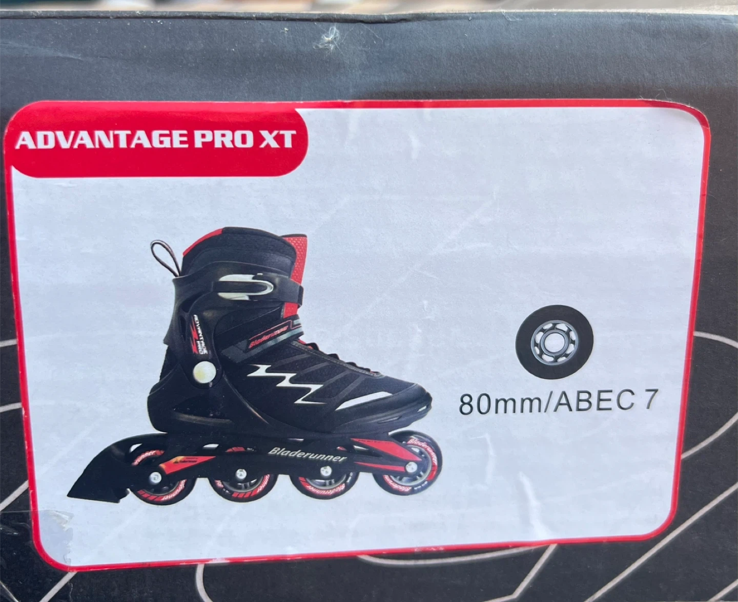 Bladerunner Advantage Pro XT inline skates in black and red. These skates feature 80mm wheels with ABEC 7 bearings.