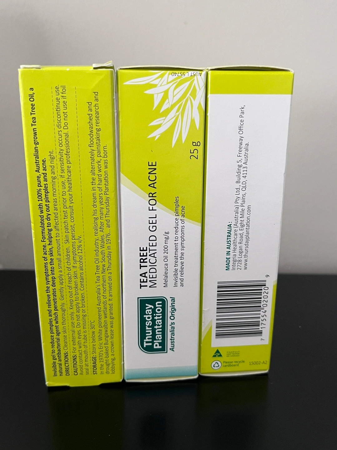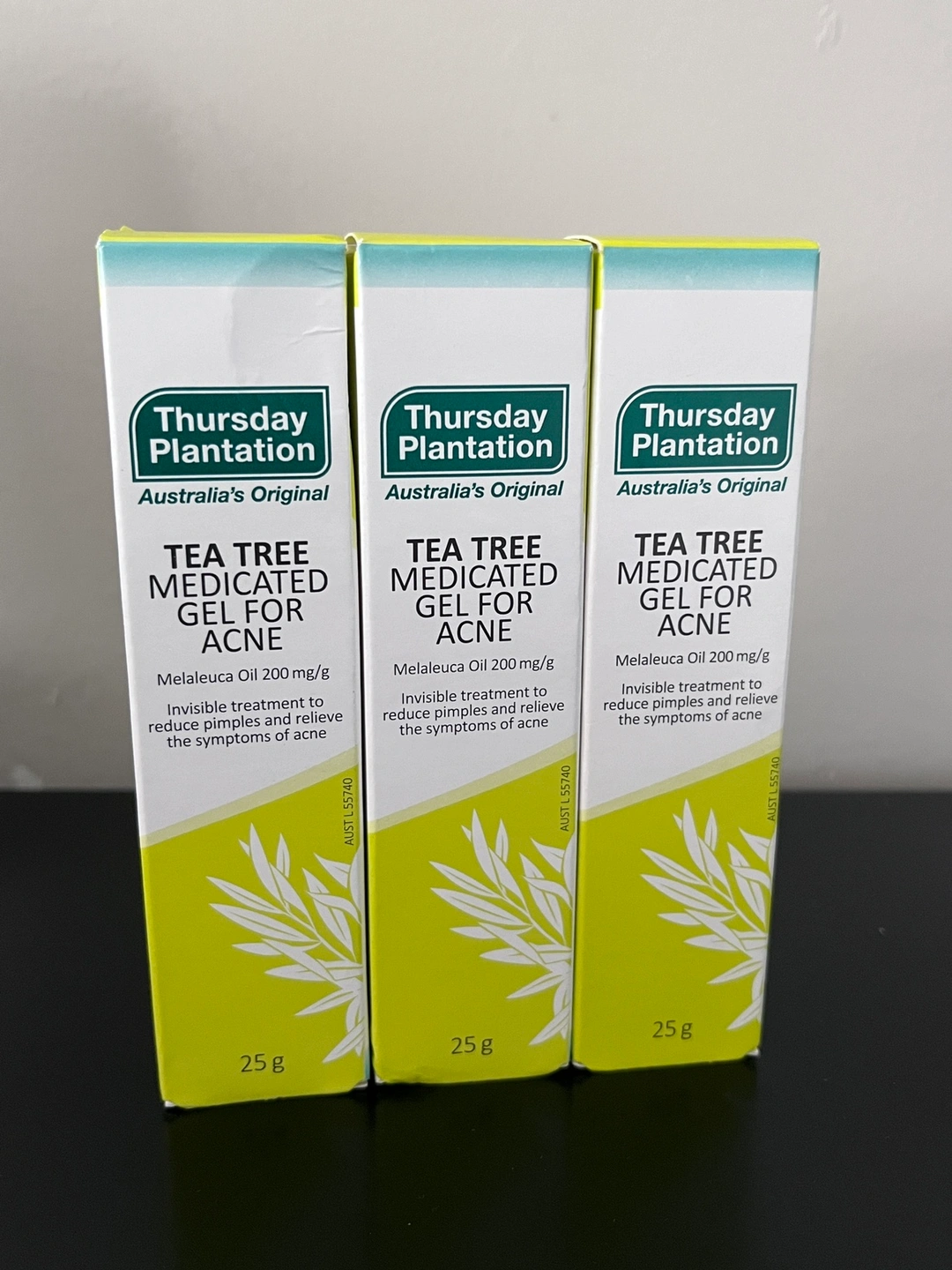Three 25g tubes of Thursday Plantation Tea Tree Medicated Gel for Acne.