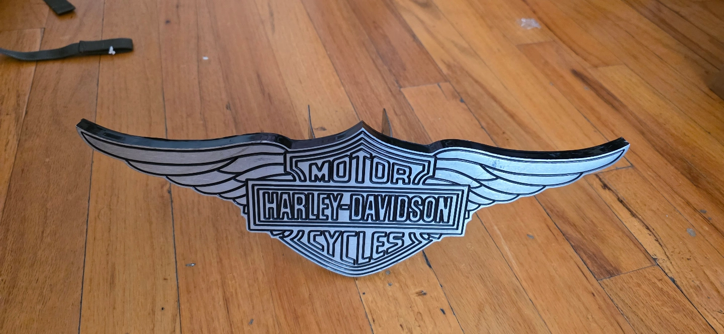 Metal Harley-Davidson license plate bracket. Features winged logo. Mounting hardware not included. Used condition.