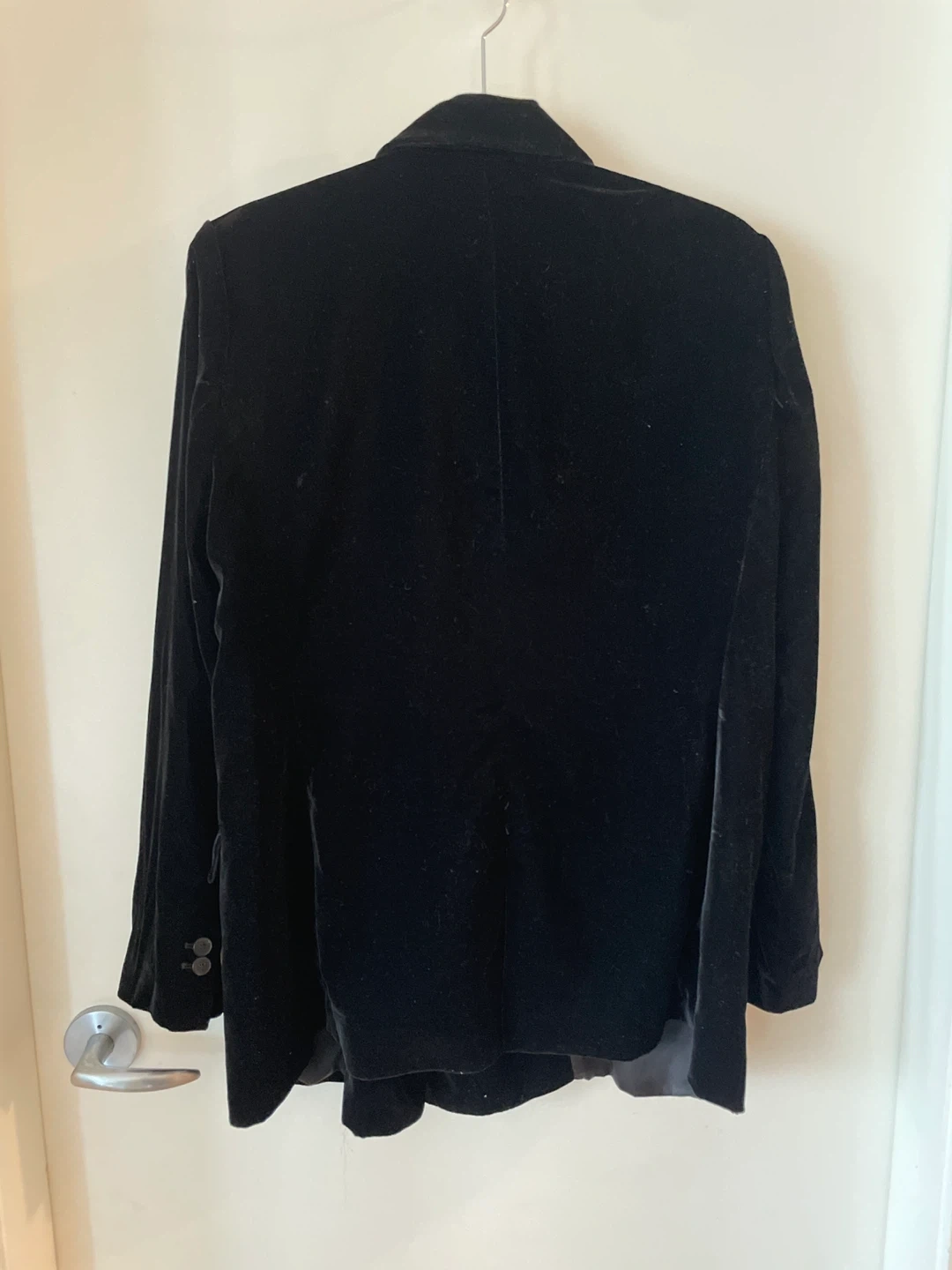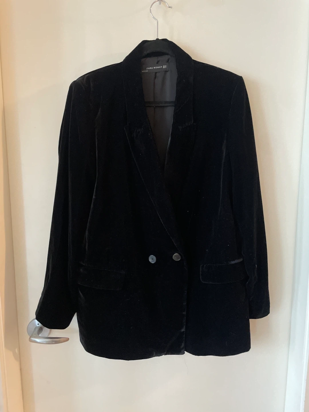 Classic black velvet blazer from Zara Woman in size XL. Fits more like L. It's a stylish and versatile piece that can be dressed up or down. Perfect for adding a touch of elegance to any outfit!