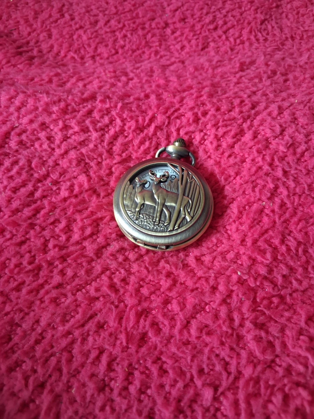 Vintage Pocket Watch with Deer Engraving