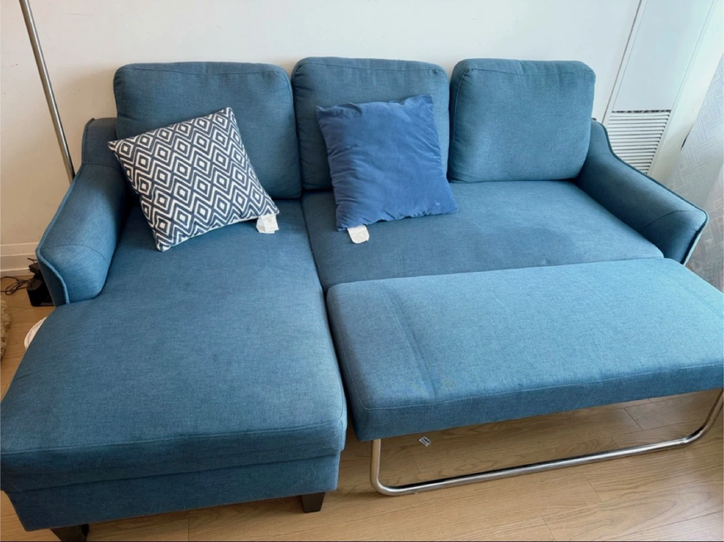Blue Sectional Sofa with Chaise- moving out sale