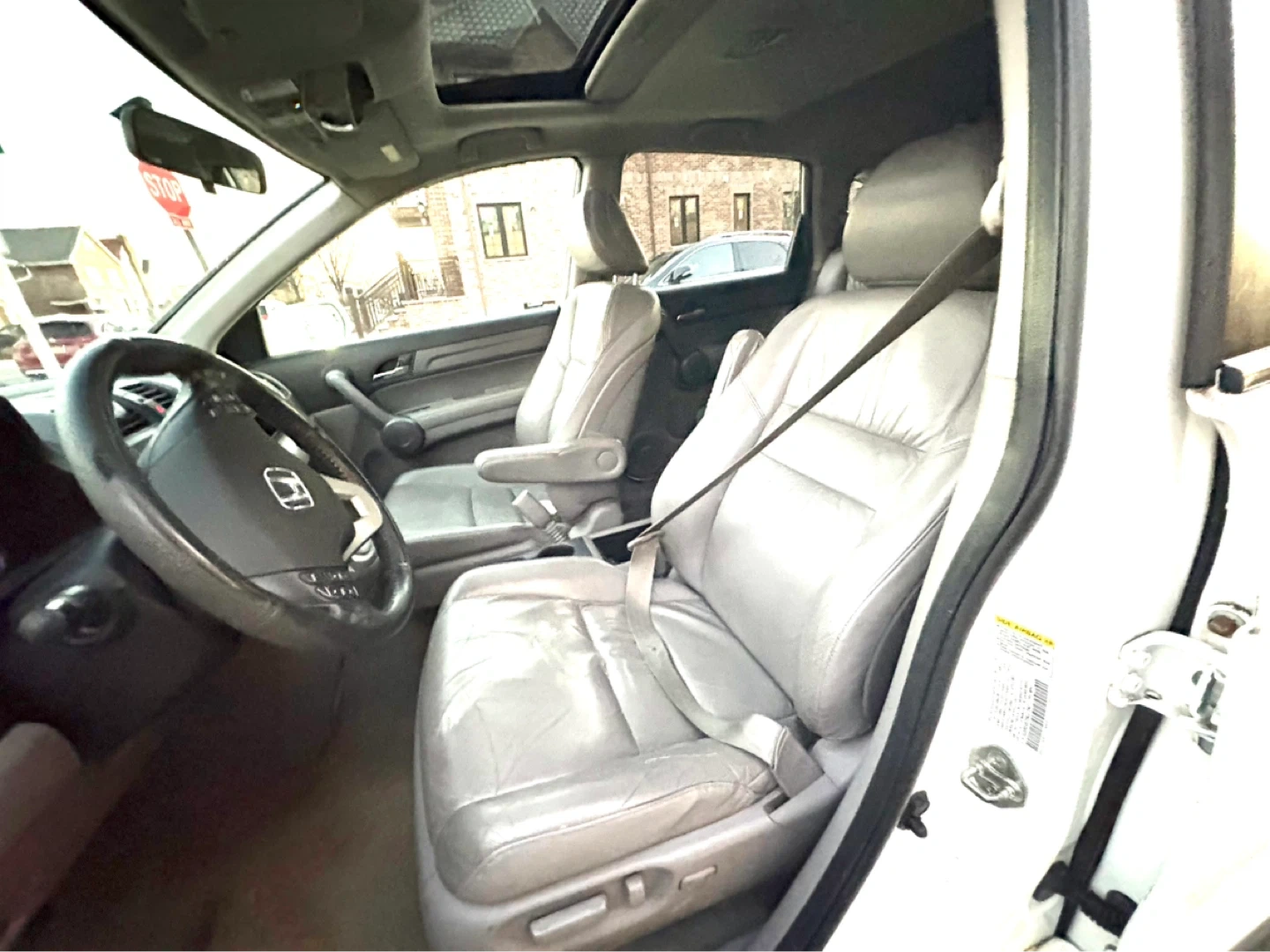 White Honda CR-V. Features leather interior and a sunroof. Runs smoothly and is ready for a new owner!