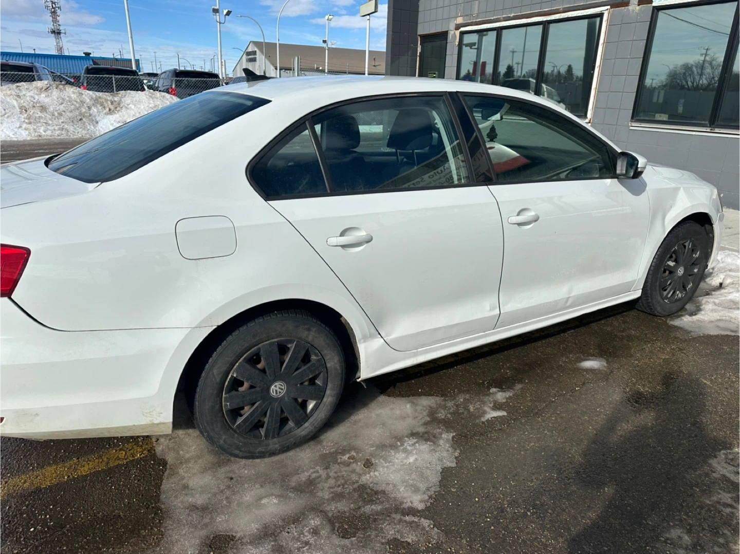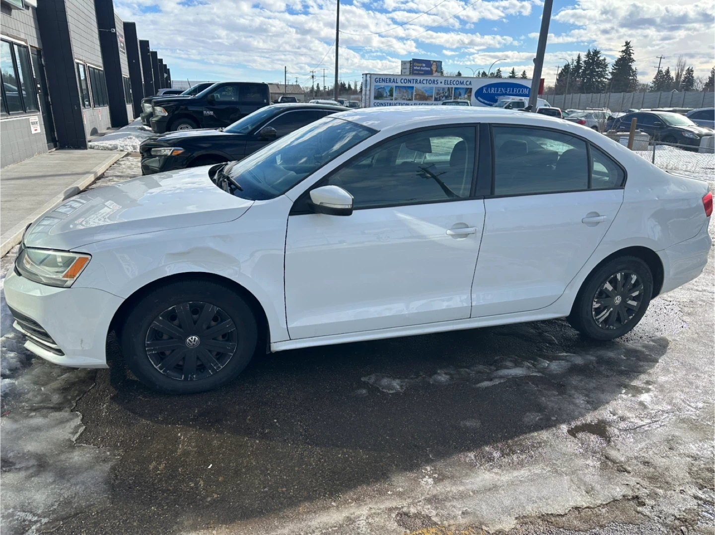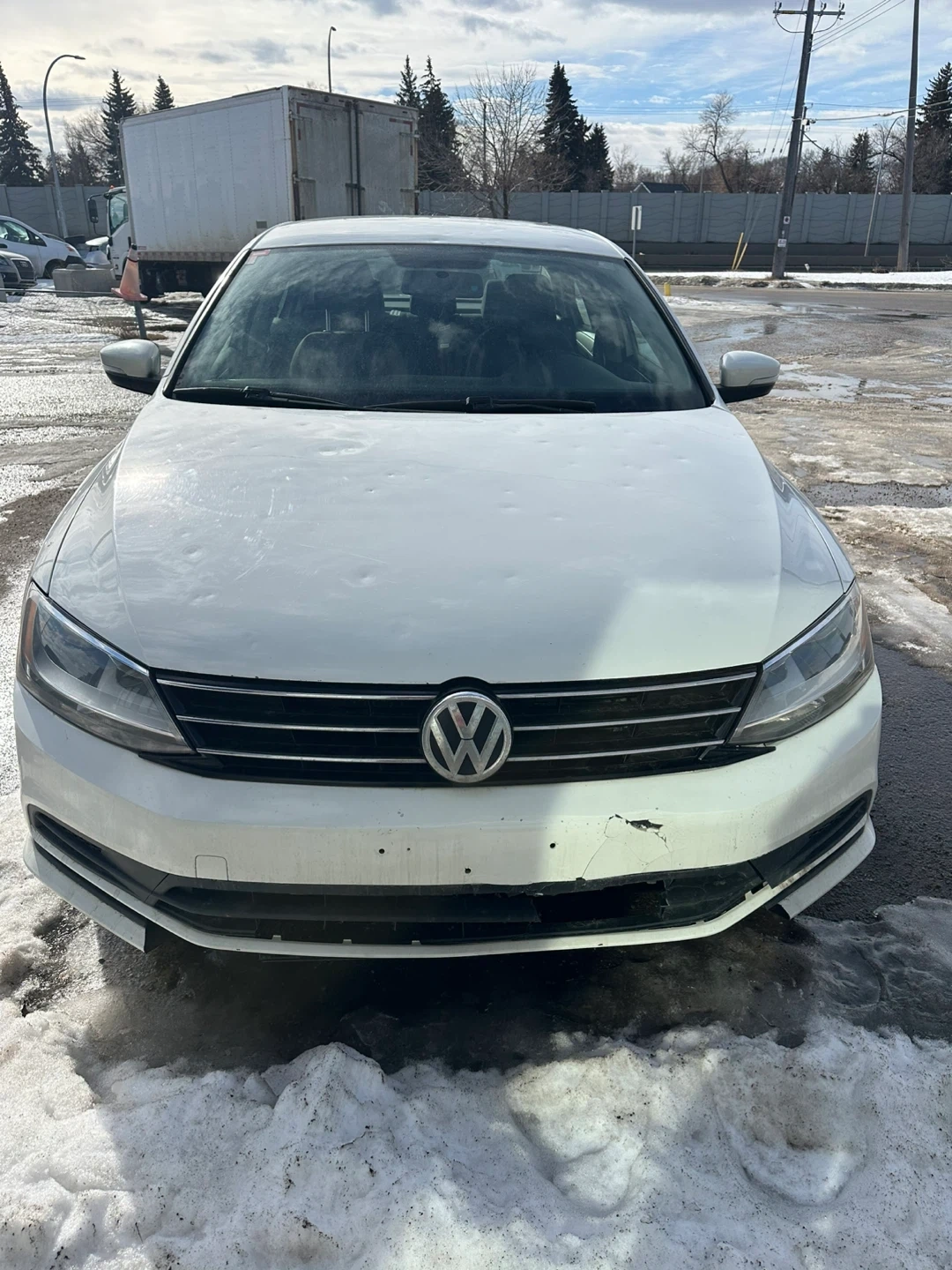 This is a white Volkswagen Jetta sedan. It's a four-door car with black wheels. The interior features black cloth seats and a standard infotainment system.. car have transmission problems. it still run and drives. gear shifting late . 2015 active car . price is firm 2300$ no less . area downtown