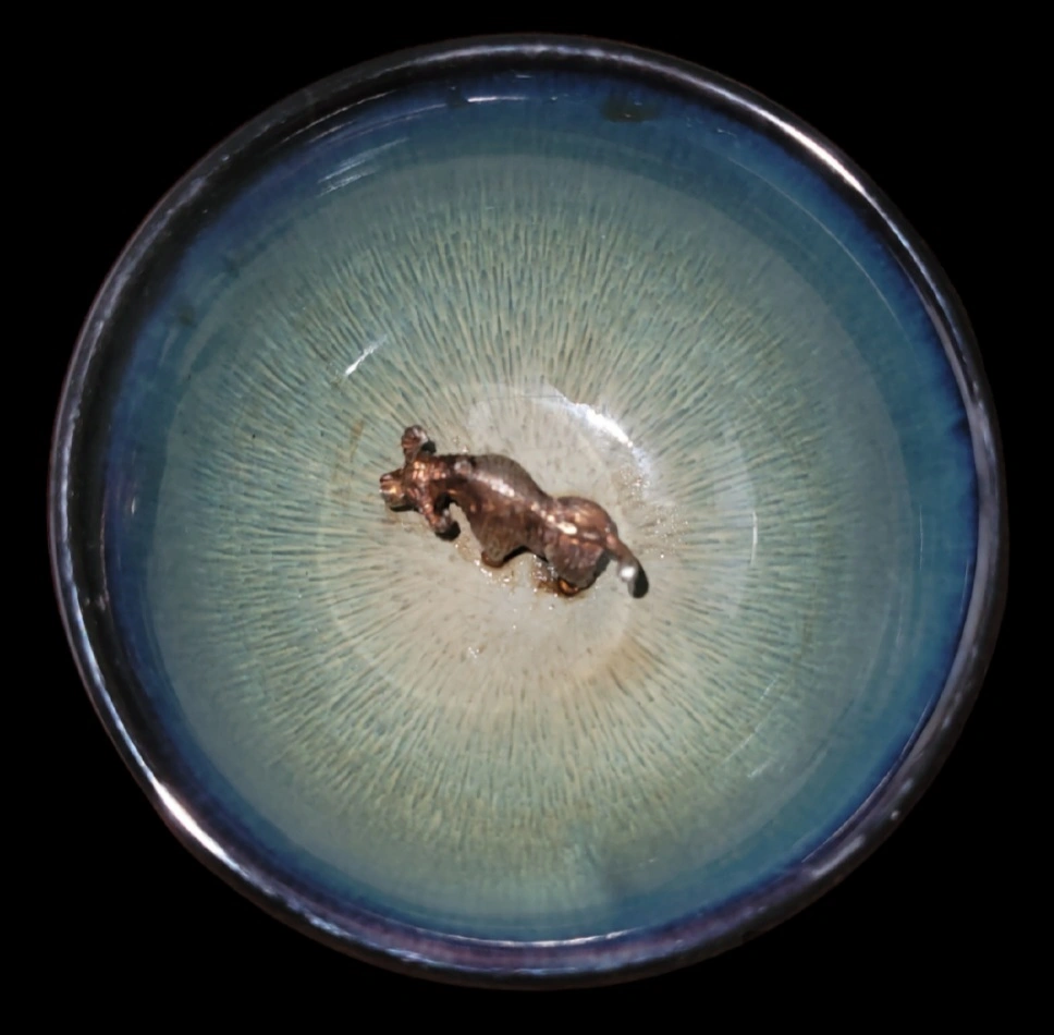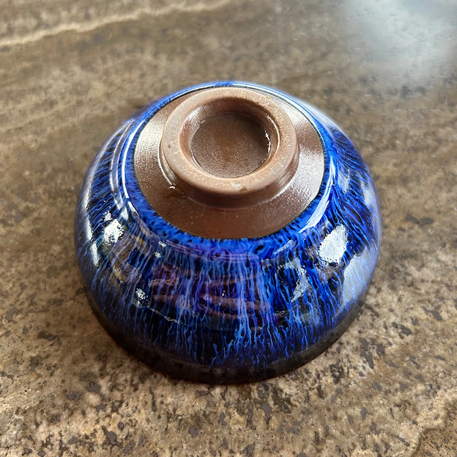 Jianzhan (also known as Tenmoku pottery) has been used to make cups and tea ceremony accessories since the Song Dynasty. In China, people called it Jianzhan, in Japan Tenmoku pottery.Artist You Wen uses local iron-rich clay as the material to make glaze and body before firing it at 1300 degrees Celsius in a kiln. The rich iron content makes it possible to create a specific clay that is used for all traditionally consumed tea and alcohol accessories.