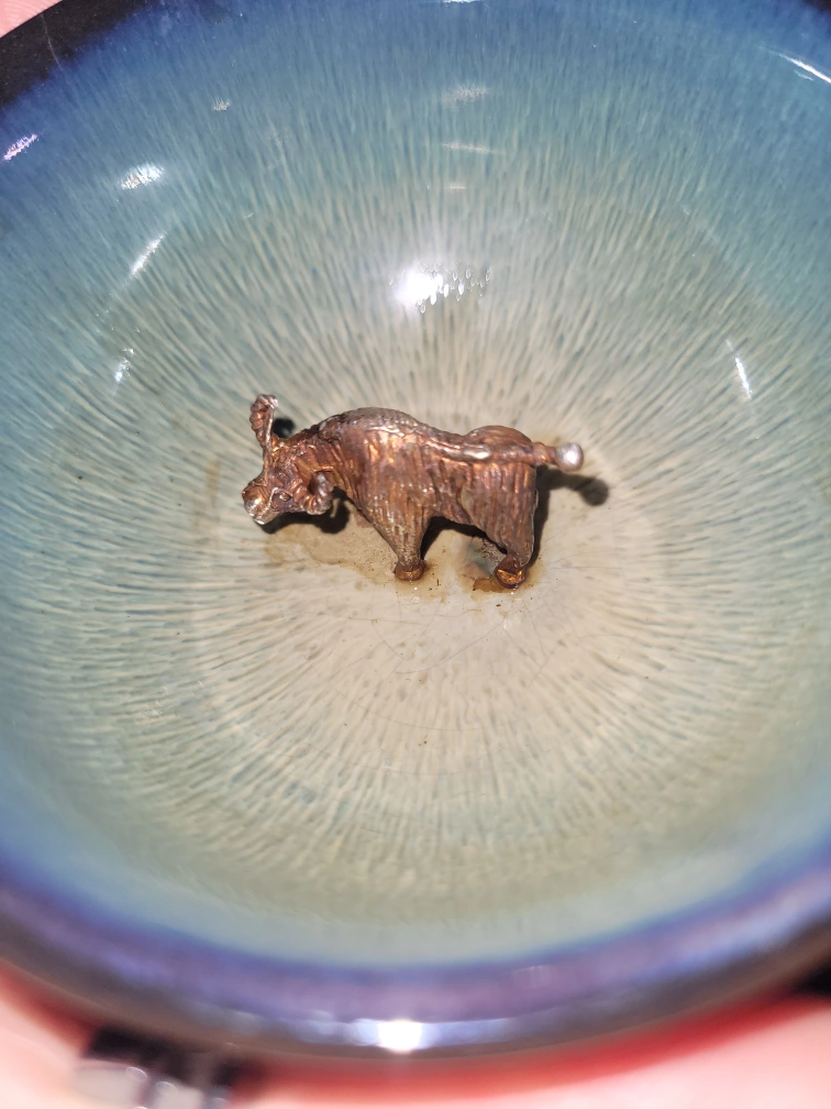 Jianzhan Tenmoku Tea Cup with Carp & Bull in Silver 50ml