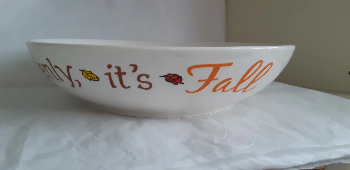 This is a really cute Peanuts ceramic bowl with a fall theme.
