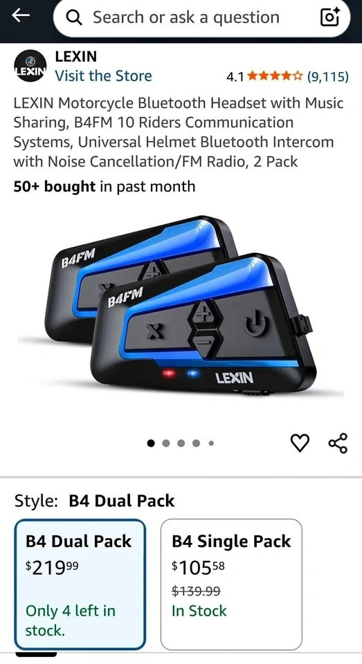 LEXIN Motorcycle Bluetooth Headset 2 Pack