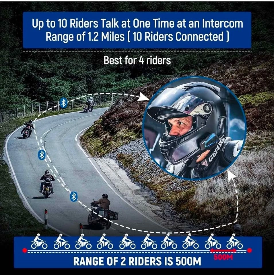 LEXIN Motorcycle Bluetooth Headset with Music Sharing, B4FM 10 Riders Communication Systems, Universal Helmet Bluetooth Intercom with Noise Cancellation/FM Radio. Pickup in Oakville.