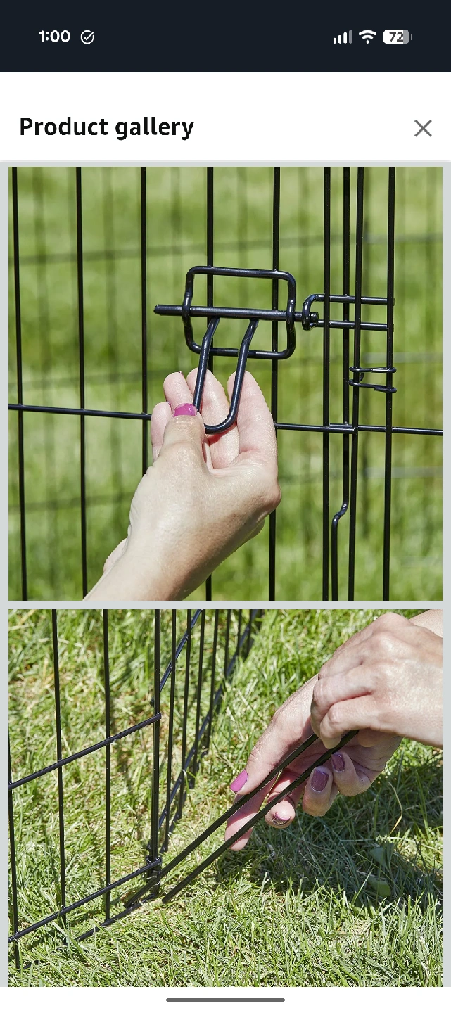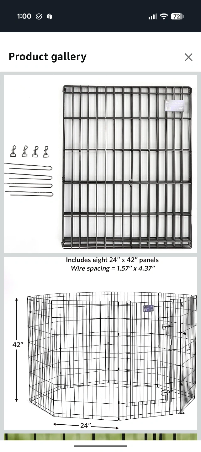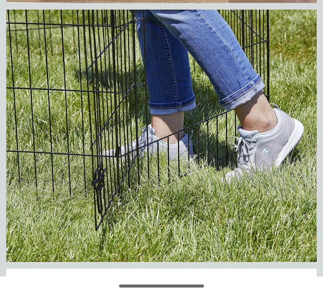 This black exercise pen is perfect for a variety of pets! It includes eight 24" x 42" panels and ground anchors and corner stabilizers. It's easy to fold flat for convenient storage and set up requires no tools or accessories for assembly