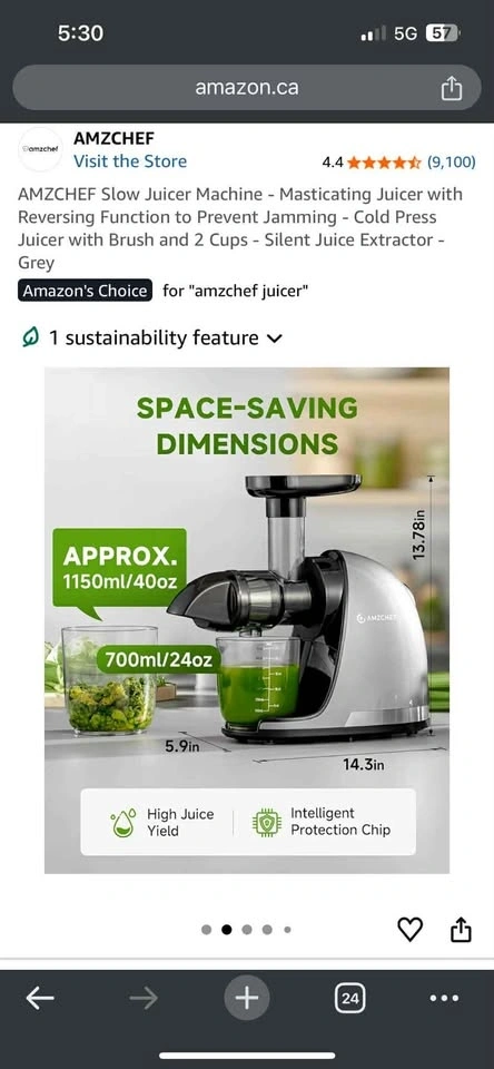 AMZCHEF Slow Juicer Machine - Masticating Juicer with Reversing Function to Prevent Jamming NO PULP!! Cold Press Juicer with 2 Cups Silent Juice Extractor - Grey. Asking $60 OBO. Collection Only Ayr Ontario.