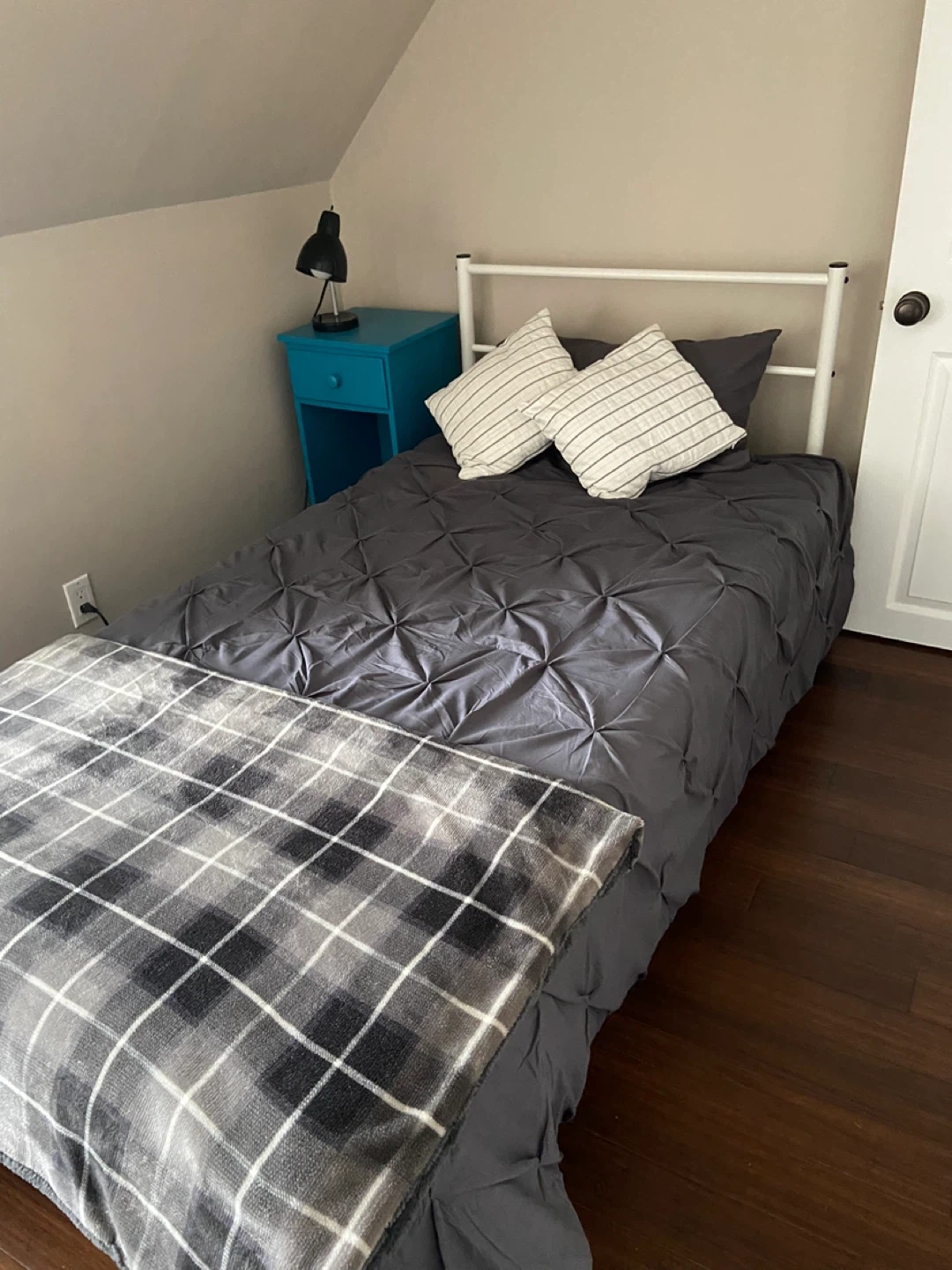 Metal frame bed with Mattress only used for staging. Bedding sheets and bedspread included on request.