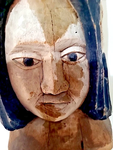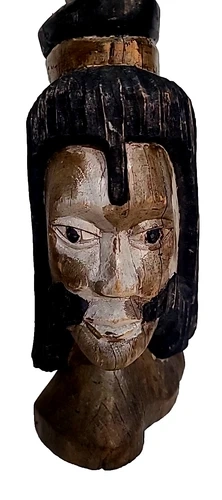 Vintage Hand Carved Wooden 3 Face Bust Sculpture