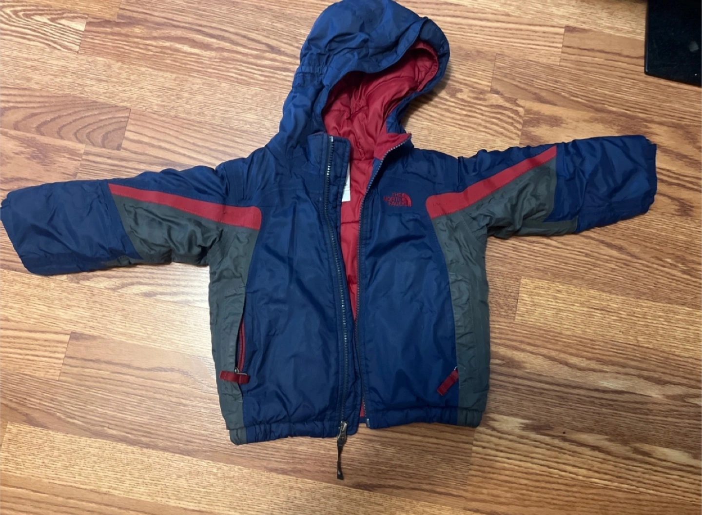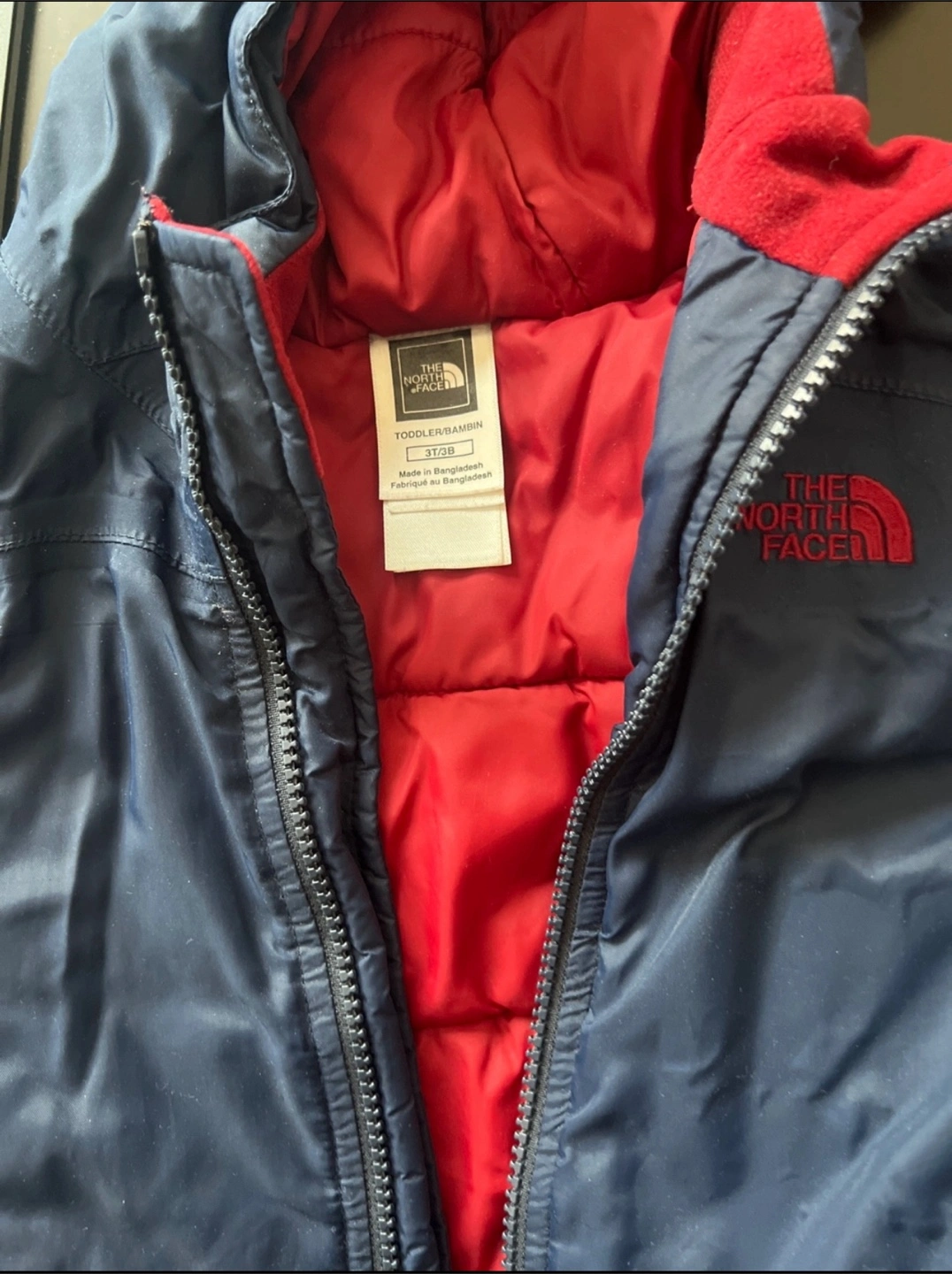 Here's a gently used The North Face toddler jacket, size 3T! It's a great jacket for keeping your little one warm and cozy during the colder months. The jacket features a hood and a full zip closure.