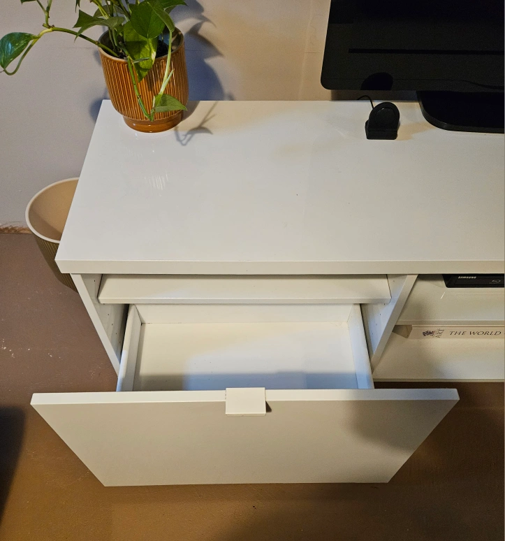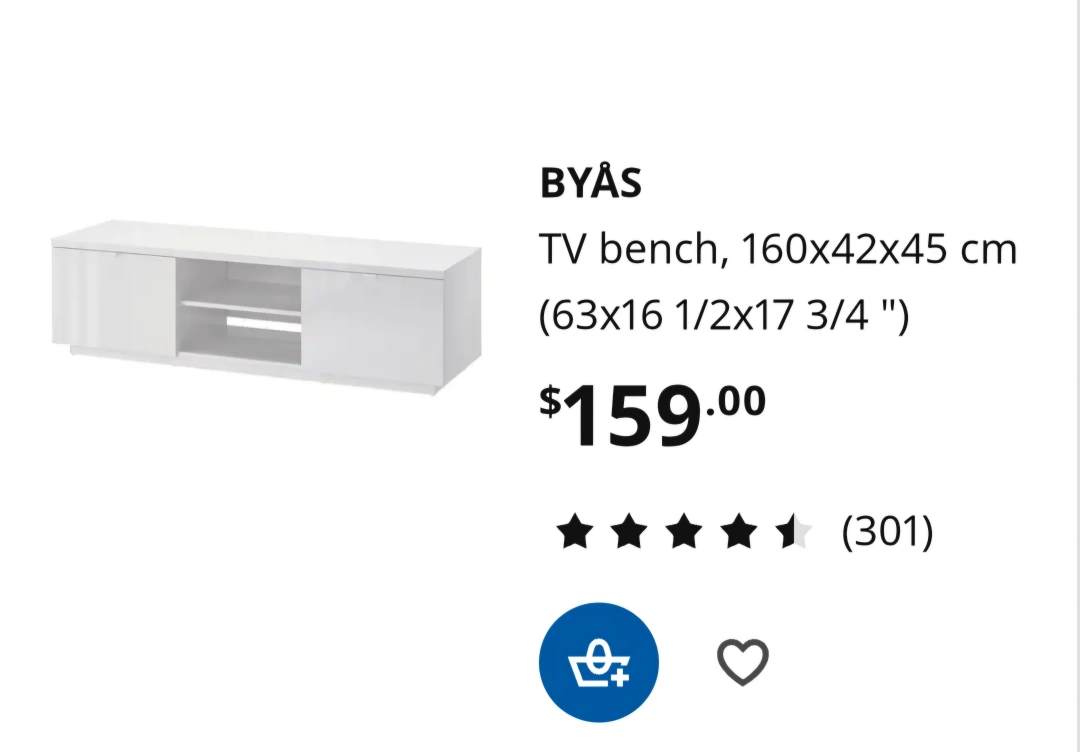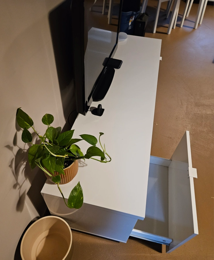 I'm selling because it is too large for my space. In excellent condition. Drawers work perfectly and all three shelves are adjustable. There are a couple very minor, teeny nicks in the finish. They are not noticeable and this is reflected in the selling price. Currently selling at IKEA for almost $180 including taxes. Please view my other listing's as I'll be posting a matching white "TOFTERYD" Coffee Table.