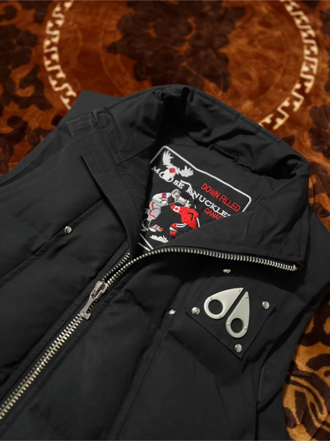 Black Moose Knuckles puffer vest, down-filled for warmth. Zipper closure Features the signature Moose Knuckles logo on the chest. This is a size medium men’s very nice jacket, includes all the tags and stitching let me know if you’re interested